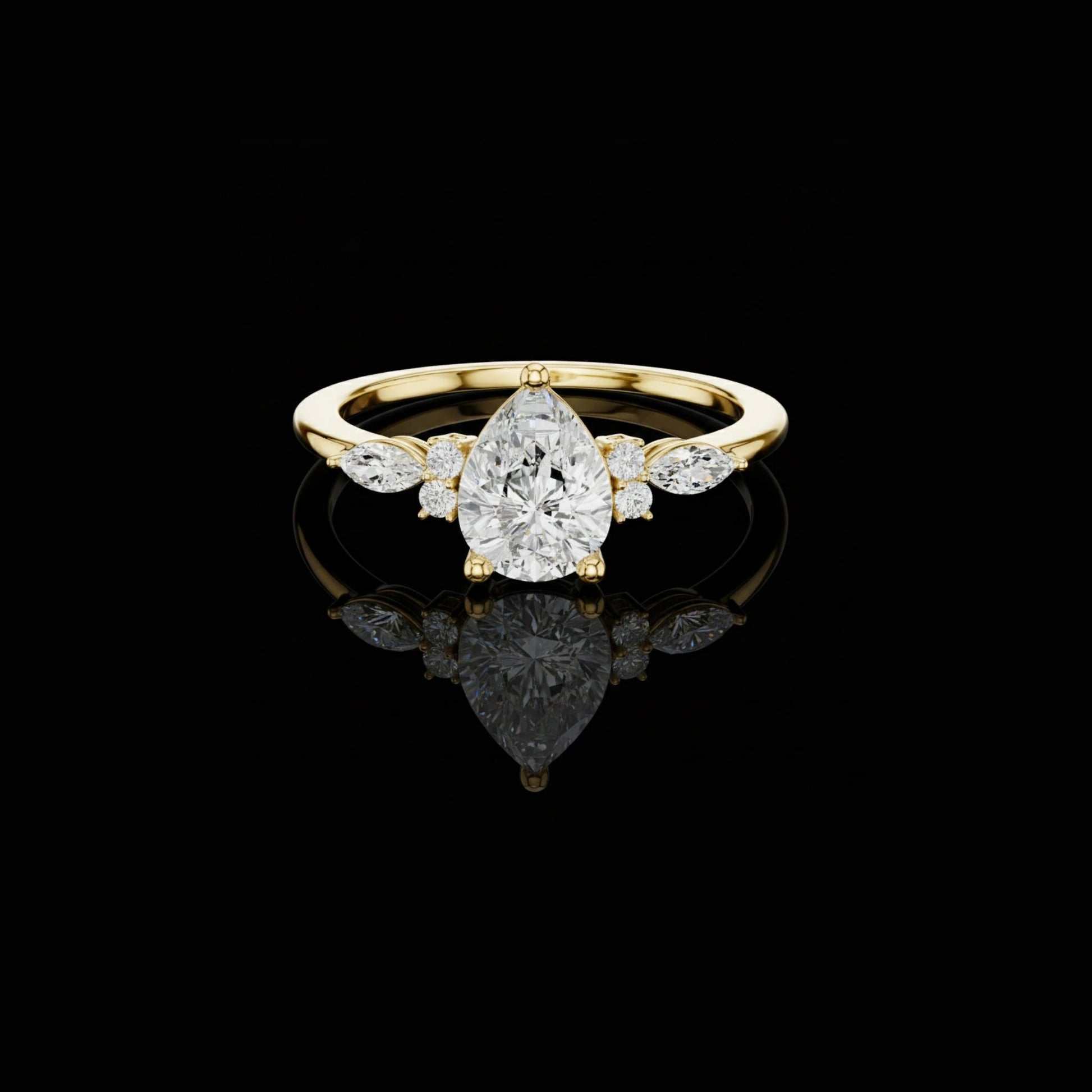 This Luxury Pear Cut Diamond Ring is a graceful expression of romance and timeless sophistication. Set in radiant gold, the brilliant pear-shaped center diamond is perfectly complemented by delicate side accent diamonds, creating a balanced silhouette that enhances its natural fire and brilliance. Designed for those who cherish elegant craftsmanship and classic bridal beauty, this ring is ideal for engagements, weddings, or unforgettable milestone moments. A stunning symbol of love, commitment, and enduring luxury, this piece reflects the refined artistry of Ivevar Luxury.