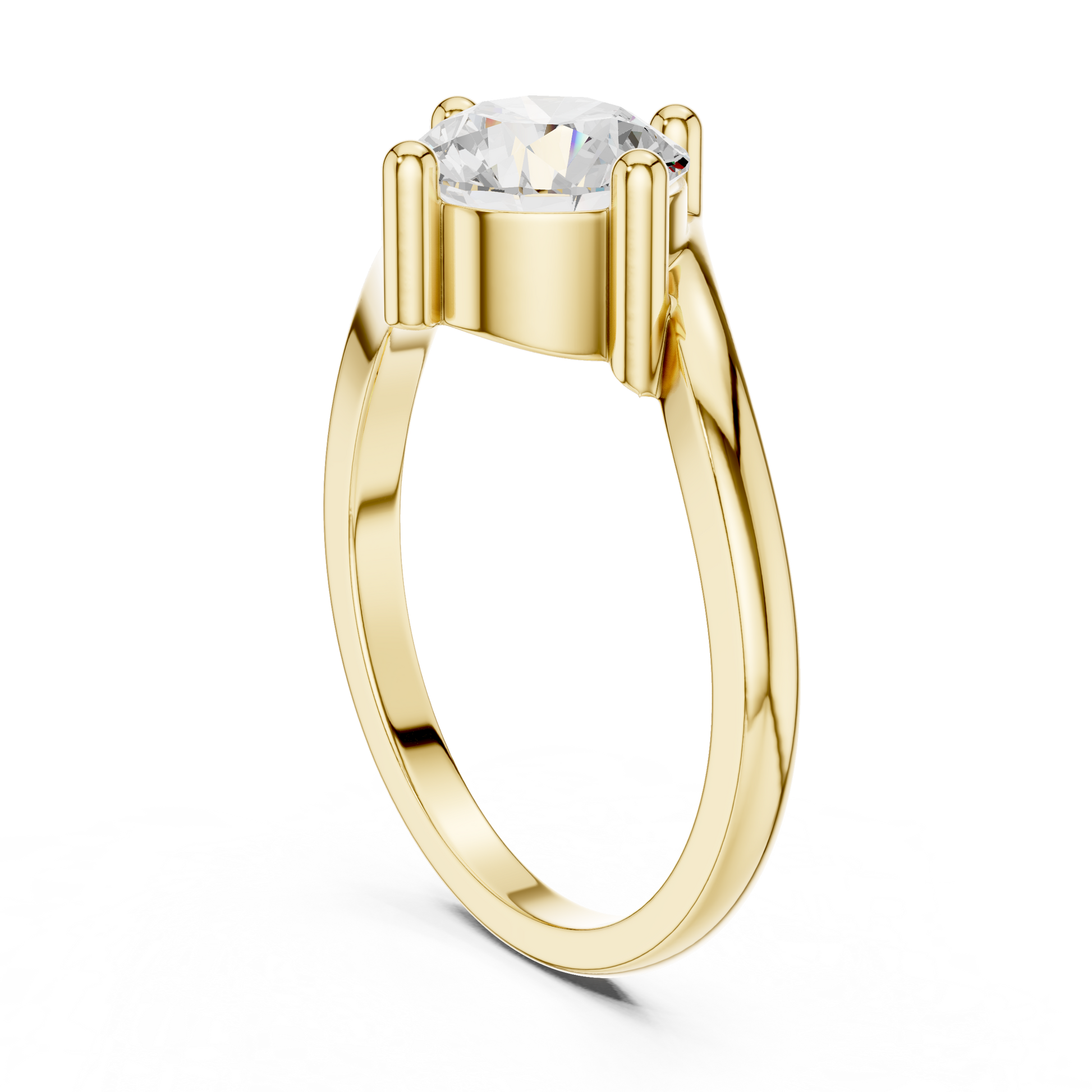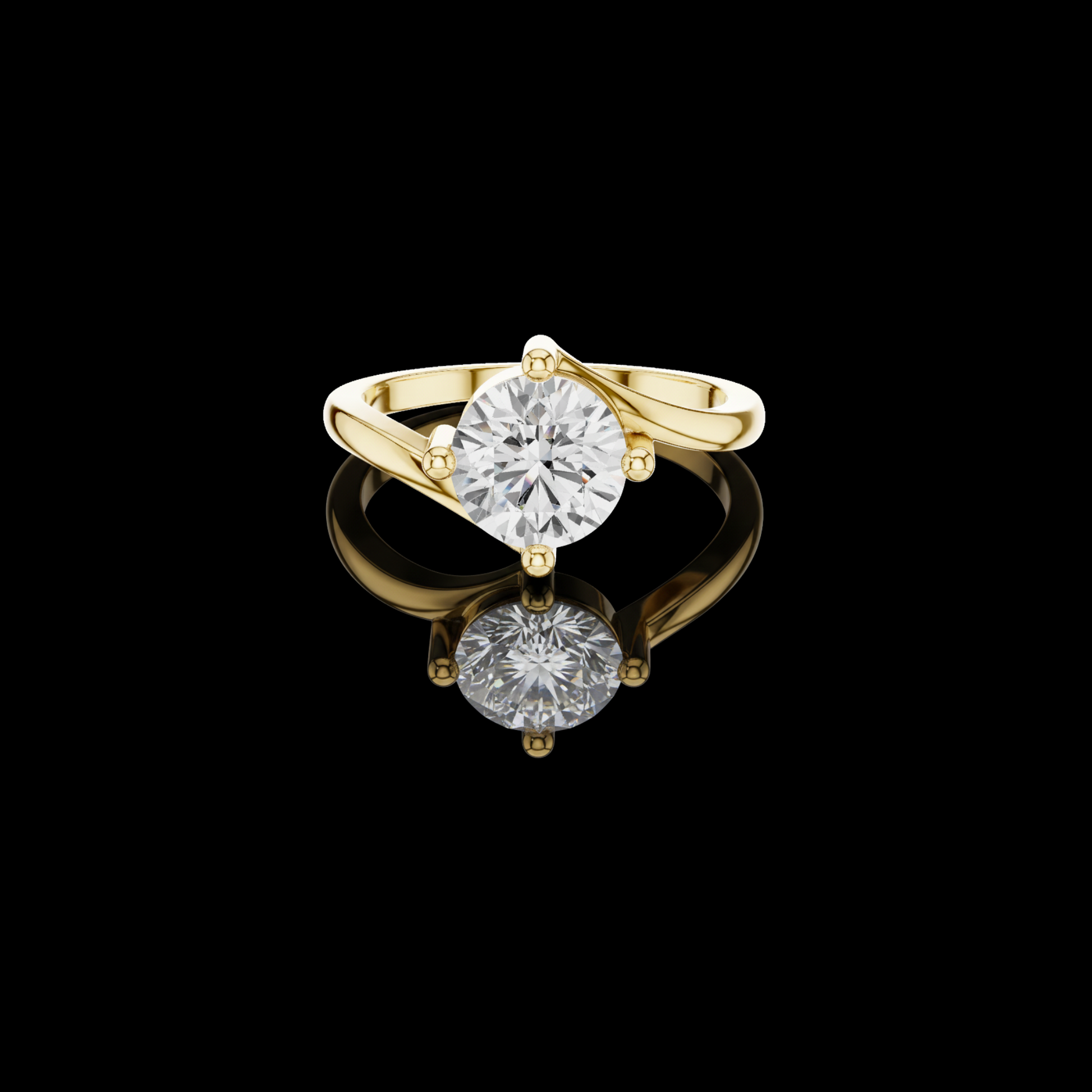 This stunning piece blends contemporary artistry with timeless elegance. Crafted in the ring features a beautifully twisted band that adds movement and sophistication. At its center lies a radiant round brilliant diamond, held securely by a sculpted four-prong setting designed to maximize light reflection and brilliance. Perfect for engagements, anniversaries, or luxury gifting, this ring offers a refined balance of modern design and classic craftsmanship, making it a captivating symbol of love and commitment.