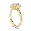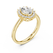 This exquisite oval halo diamond ring features a brilliant oval-cut center stone surrounded by a radiant halo of round accent diamonds, creating a floral-inspired sparkle effect. Crafted in polished gold, the ring blends modern shine with timeless elegance. Its halo design enhances the size and brilliance of the center stone, making it a perfect choice for engagements, anniversaries, or luxurious everyday wear. A dazzling symbol of love, beauty, and sophistication.