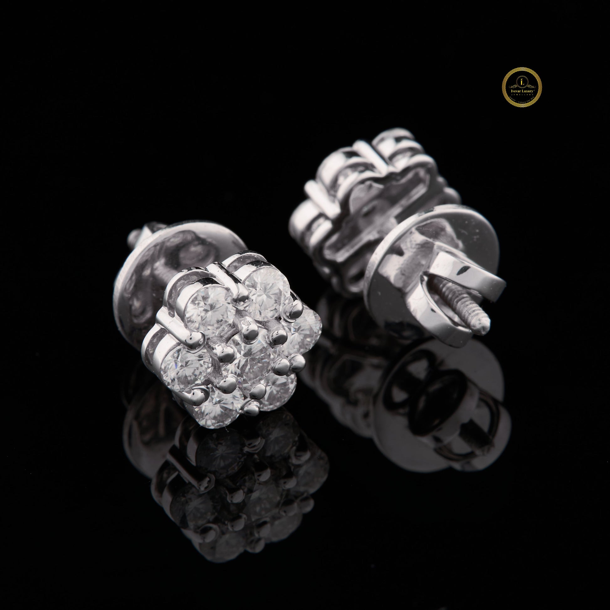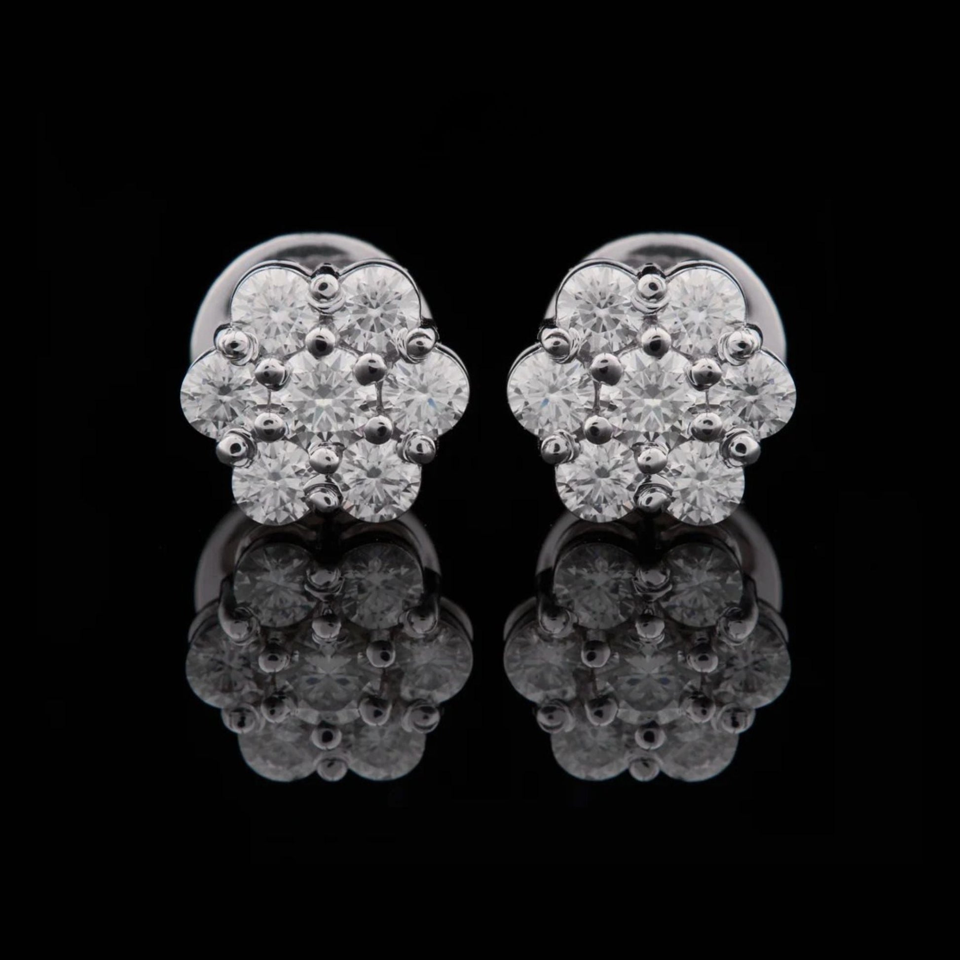 These floral cluster diamond stud earrings feature a beautifully arranged bouquet of round brilliant stones, creating a radiant flower-inspired design that sparkles from every angle. Their delicate yet eye-catching silhouette adds a touch of elegance and femininity, making them perfect for everyday wear or special occasions. Crafted for exceptional brilliance and timeless charm, these studs bring a refined and graceful glow to any jewelry collection.