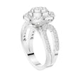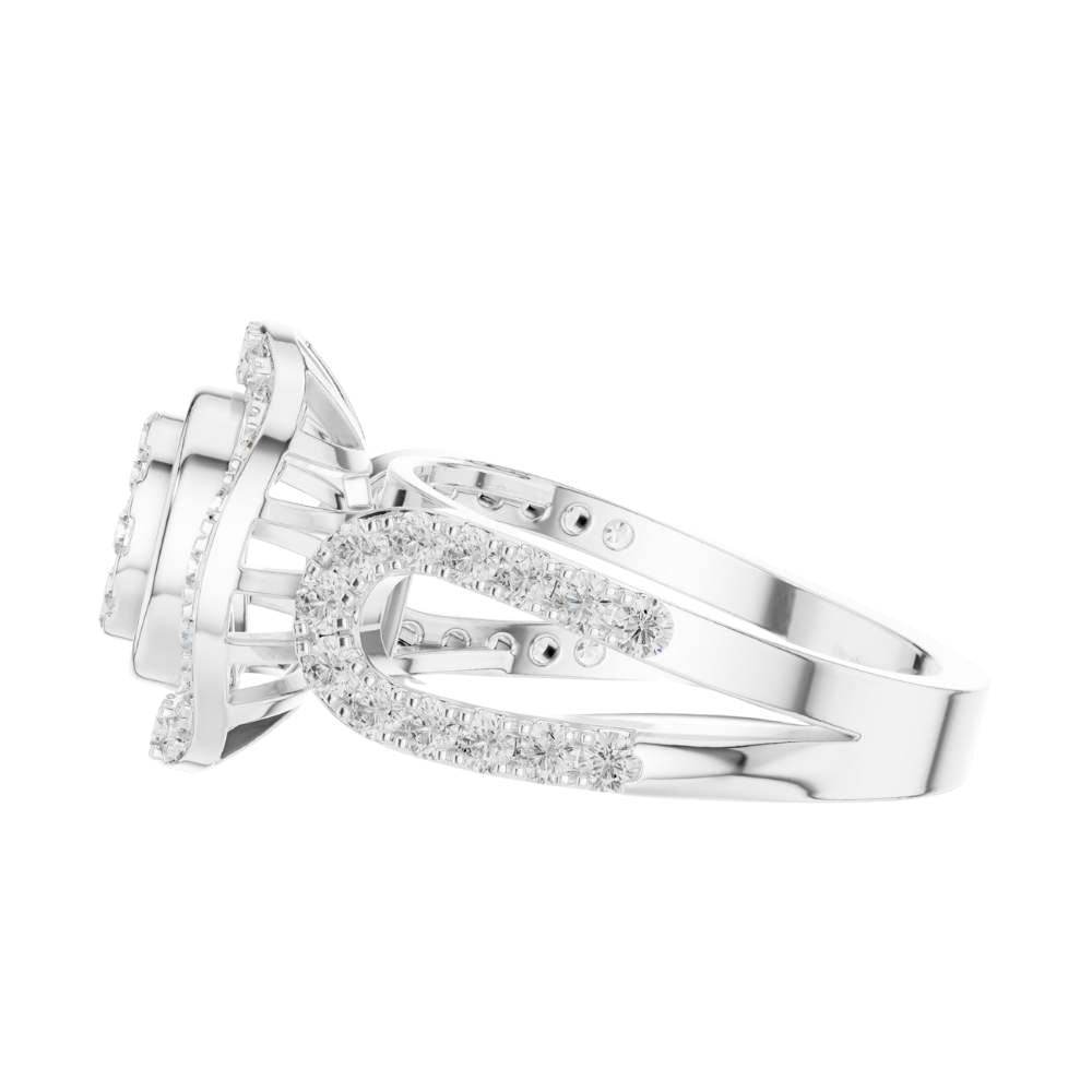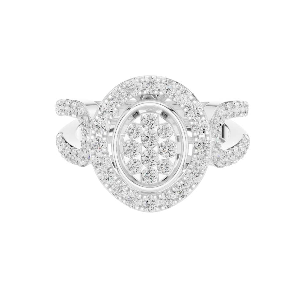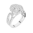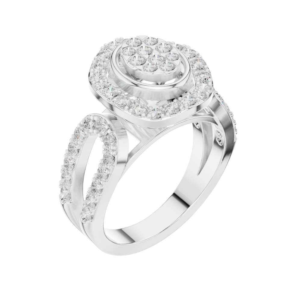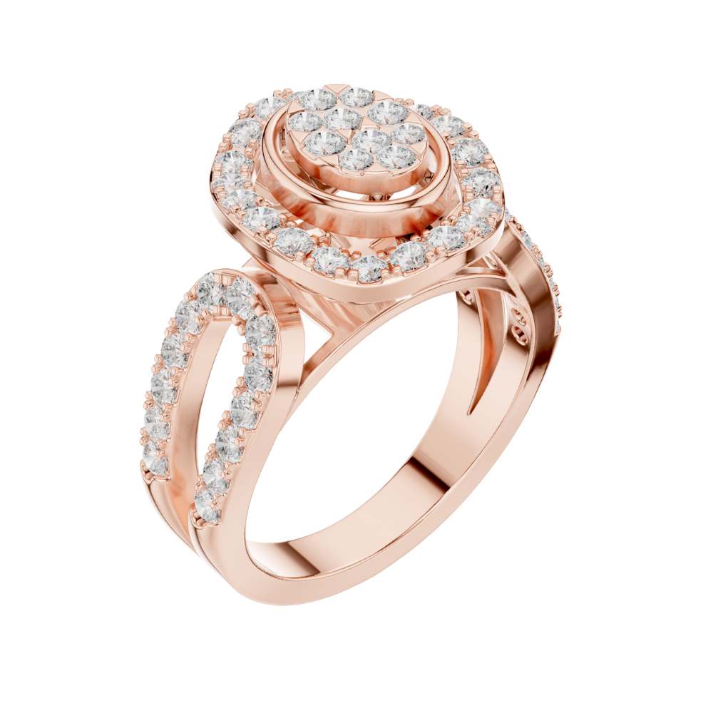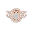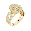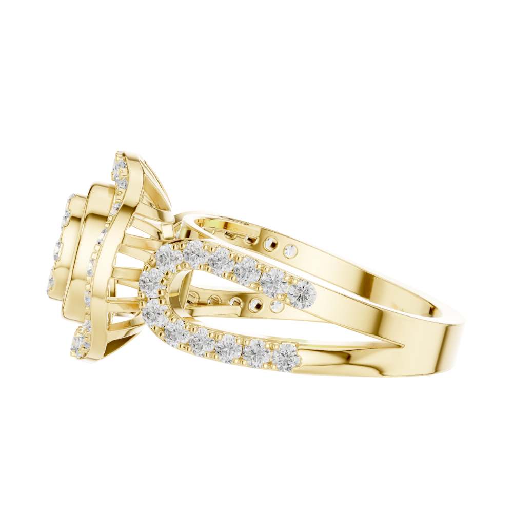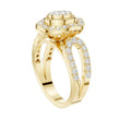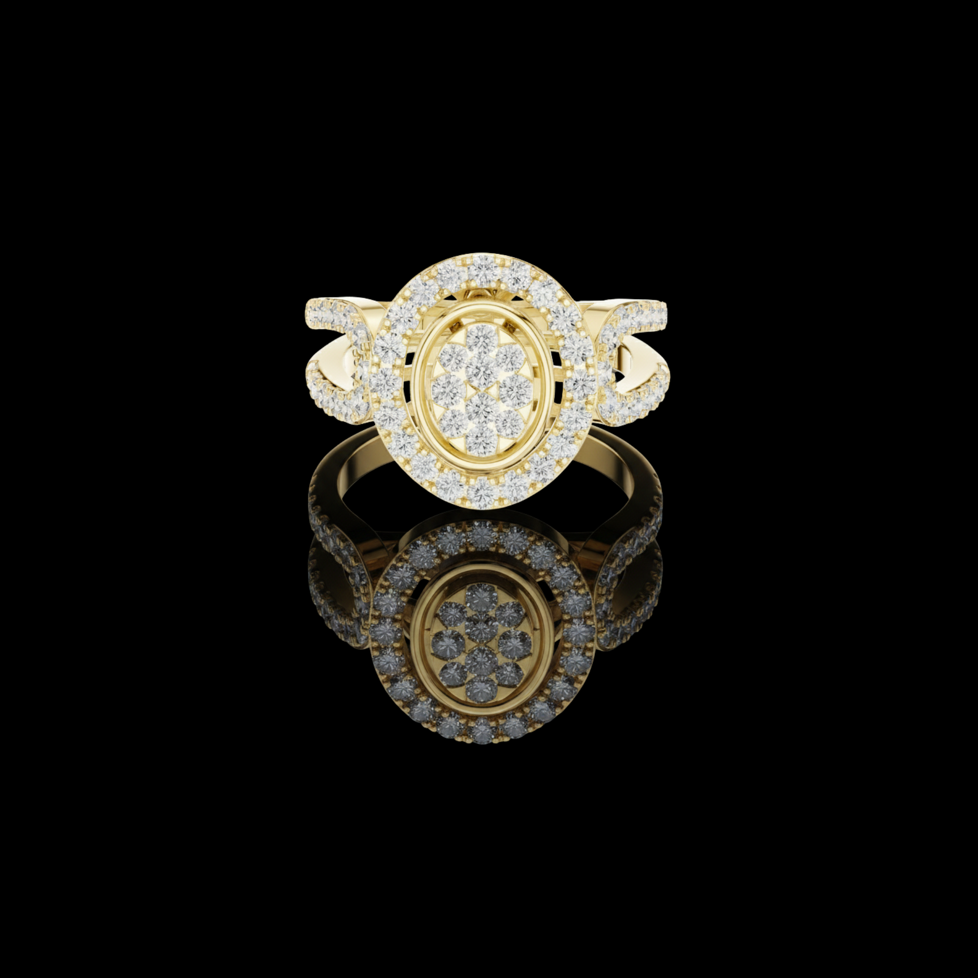This stunning ring showcases an elegant oval-shaped centerpiece adorned with a floral cluster of brilliant round diamonds, creating a captivating bloom of sparkle. Surrounding the center motif is a shimmering diamond halo that enhances its radiance, while the split-shank band—also lined with sparkling diamonds—adds graceful sophistication and dimension. Crafted in polished yellow gold, this piece blends classic beauty with modern refinement, making it a striking choice for special occasions, meaningful celebrations, or everyday luxury by Ivevar.