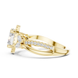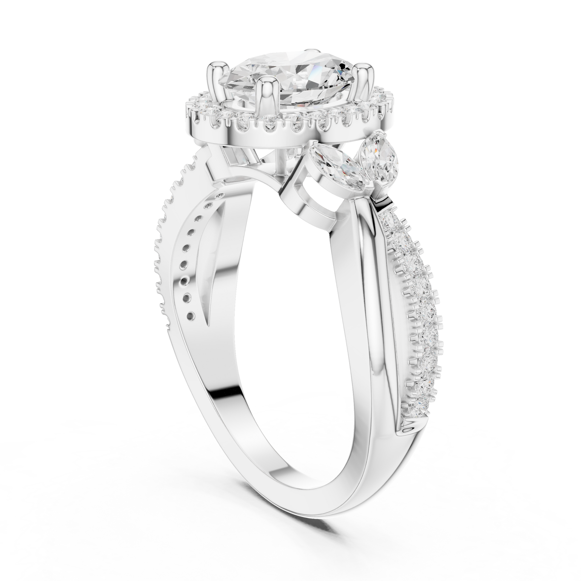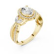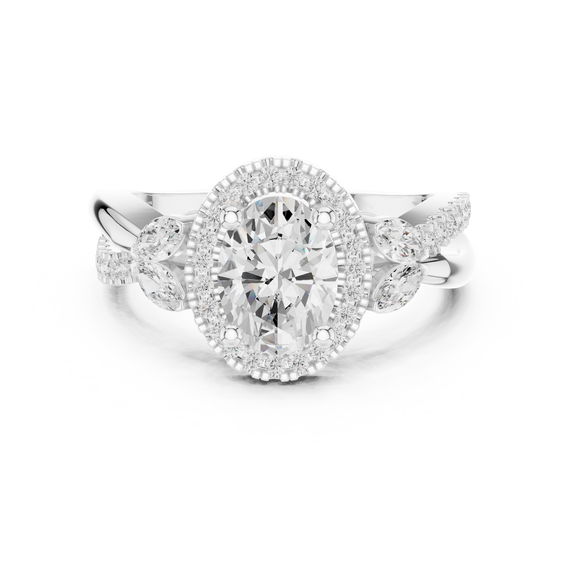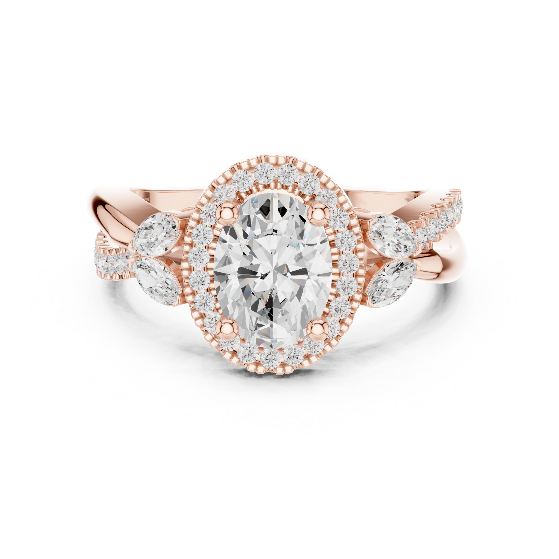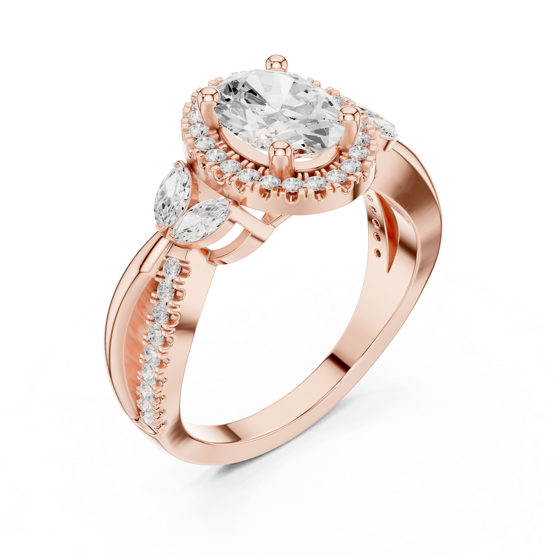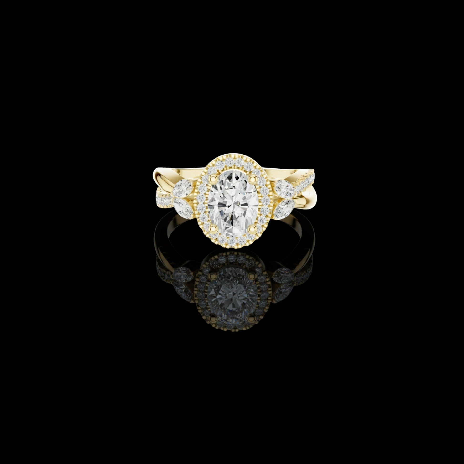 The Lumina oval halo diamond ring is a striking blend of brilliance and sculptural elegance. At its heart, a radiant oval-cut diamond is framed by a finely detailed halo that amplifies sparkle and depth. Distinctive diamond-accented elements along the gold band create a graceful, dimensional profile, offering beauty from every angle. Designed for those who appreciate refined luxury with artistic detail, this ring embodies confidence, romance, and timeless craftsmanship—perfect for engagements or meaningful celebrations.