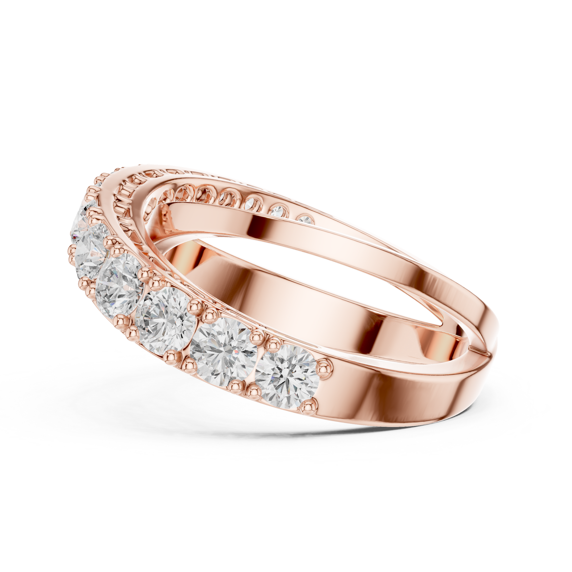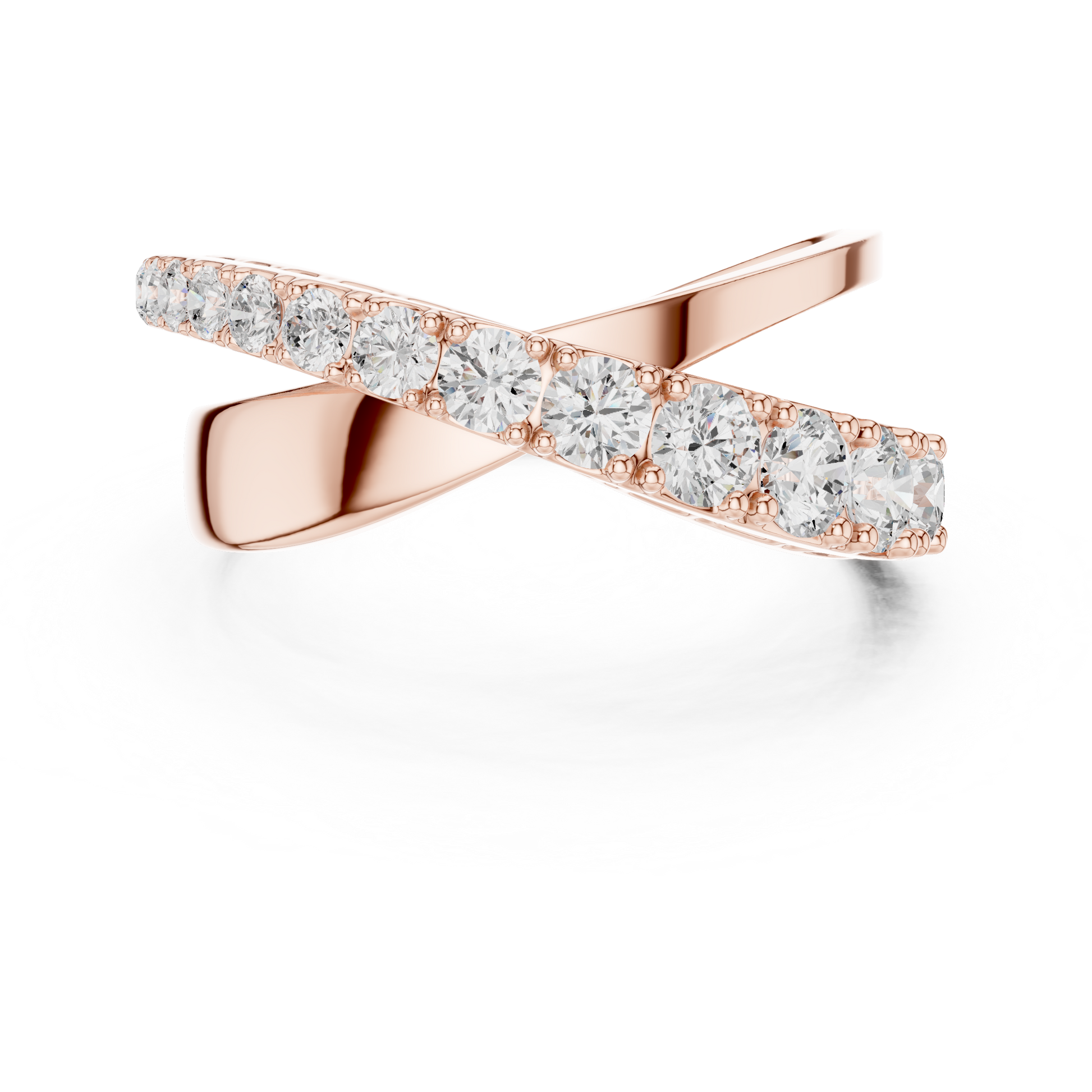 this elegant crossover diamond ring by Ivevar Luxury showcases a refined criss-cross design set with sparkling round brilliant cut diamonds. The flowing silhouette creates a modern yet timeless look that shines beautifully from every angle. Designed for comfort and everyday elegance, it makes a perfect wedding band, anniversary ring, or statement piece. This luxurious ring reflects exceptional craftsmanship and understated sophistication.