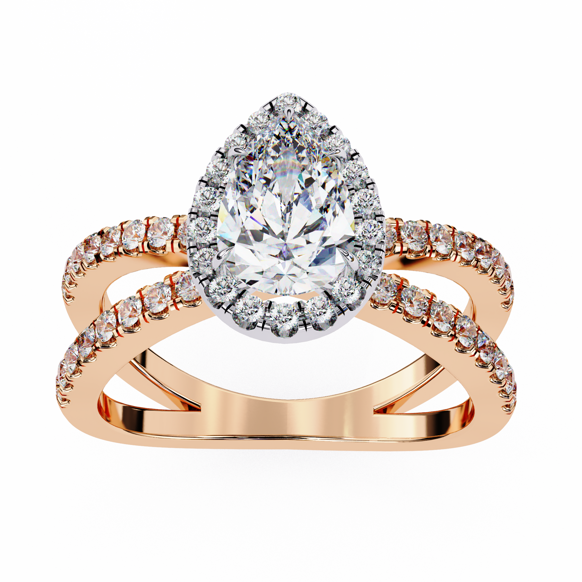 The Ivevar Luxury pear-shaped diamond ring is a breathtaking symbol of timeless elegance. Featuring a stunning pear-cut diamond at the center, flanked by sparkling round diamonds on both sides, this ring is crafted in gold with a unique split-shank design. Its luxurious craftsmanship and radiant accents make it the perfect choice for engagements or special celebrations.