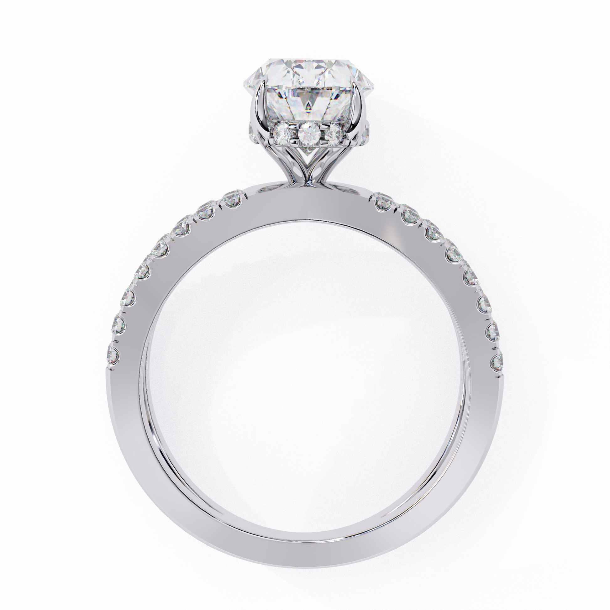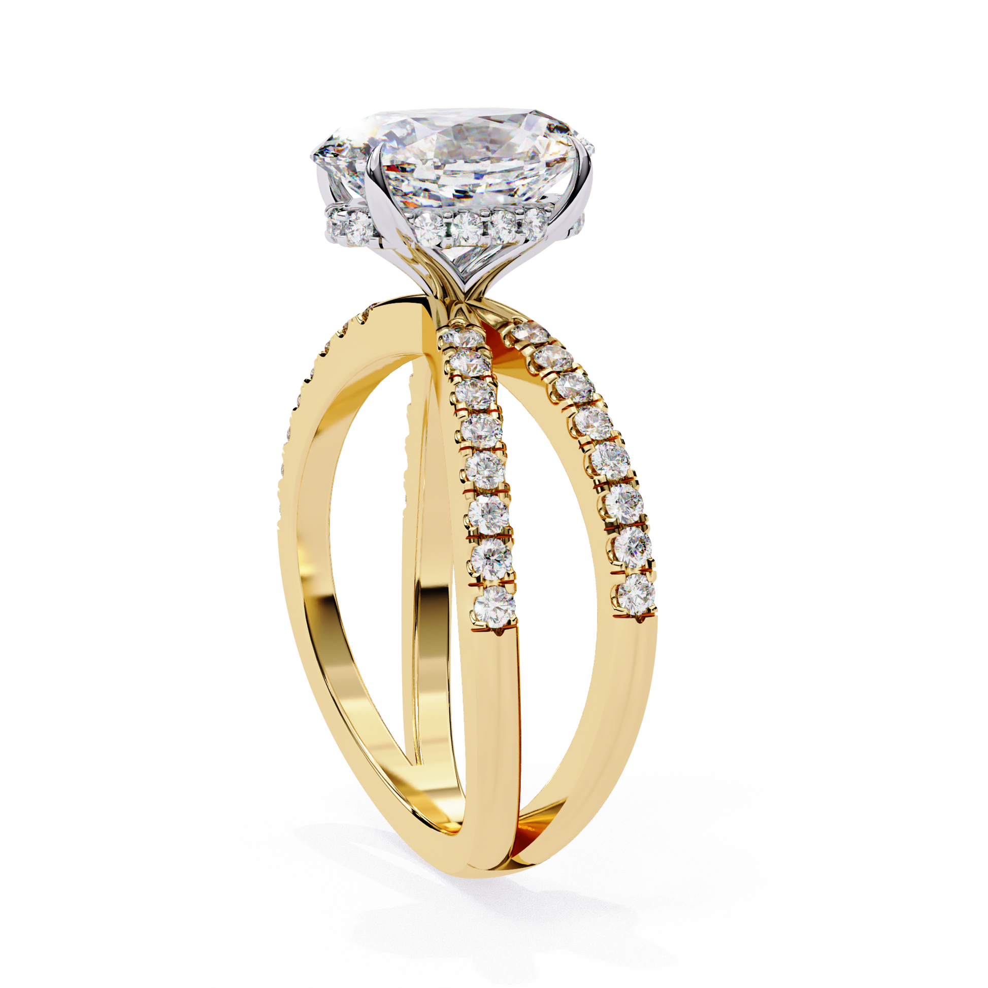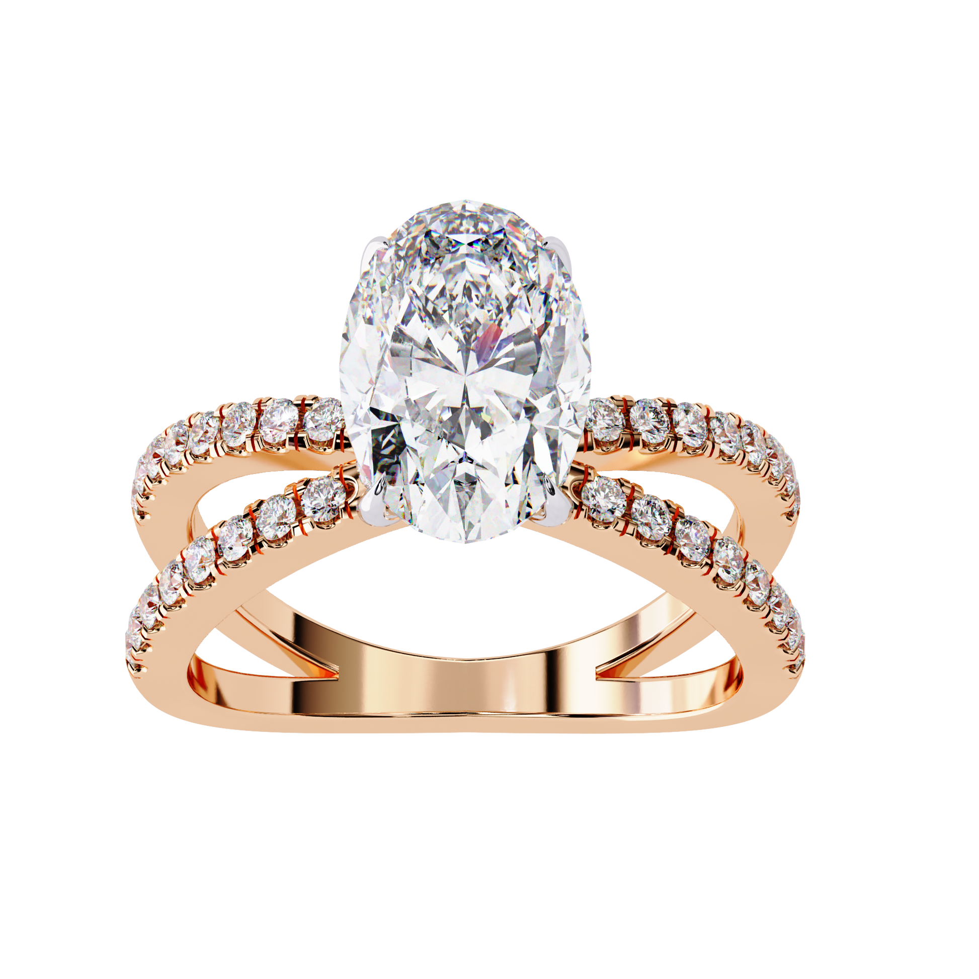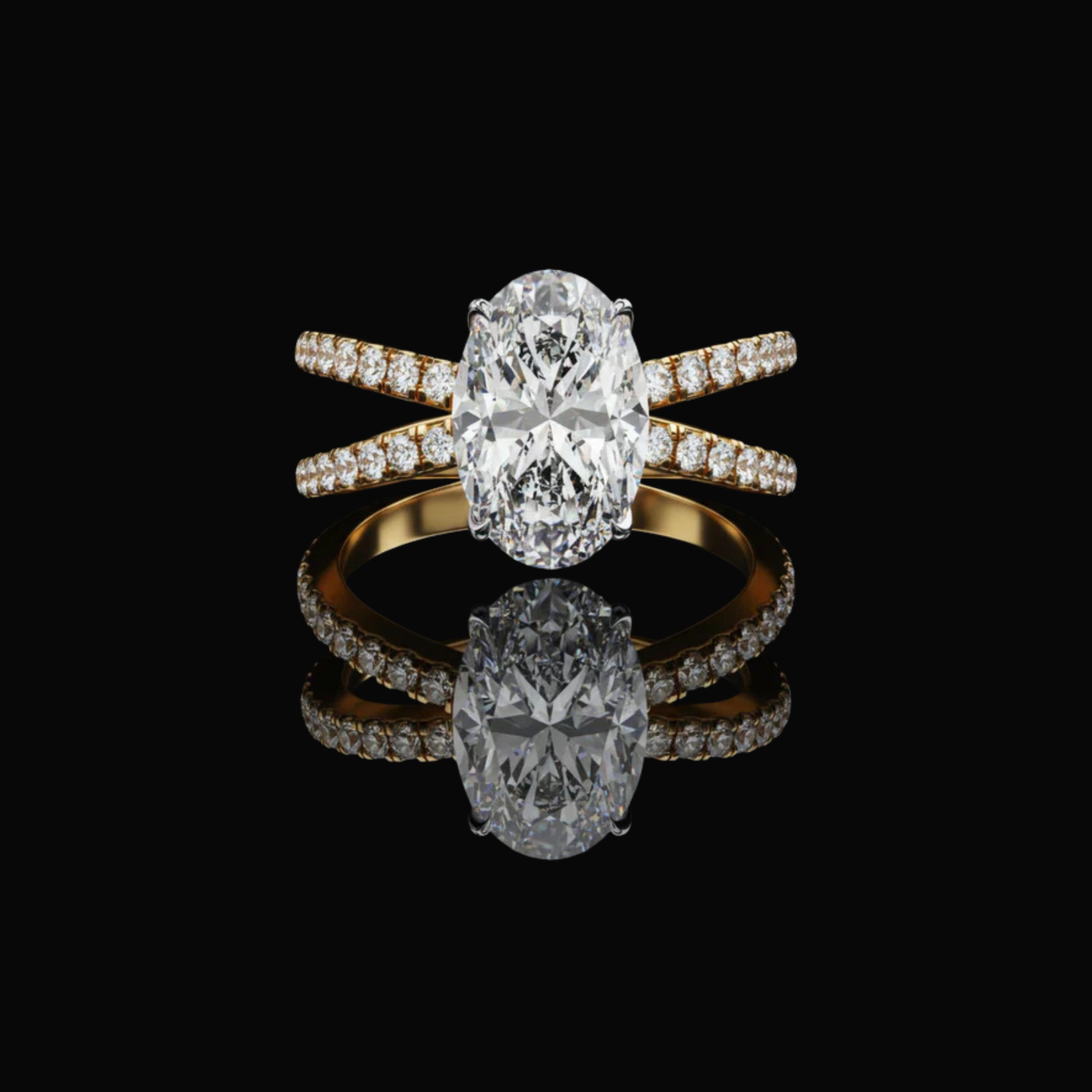 This exquisite ring showcases a breathtaking oval-cut diamond that radiates exceptional fire and clarity. The center stone is gracefully complemented by double pave bands, each adorned with meticulously set brilliant diamonds for added sparkle. Crafted in premium , this piece blends luxury, craftsmanship, and sophisticated design. Perfect as an engagement ring or a statement piece for those who appreciate elegance and fine jewelry.