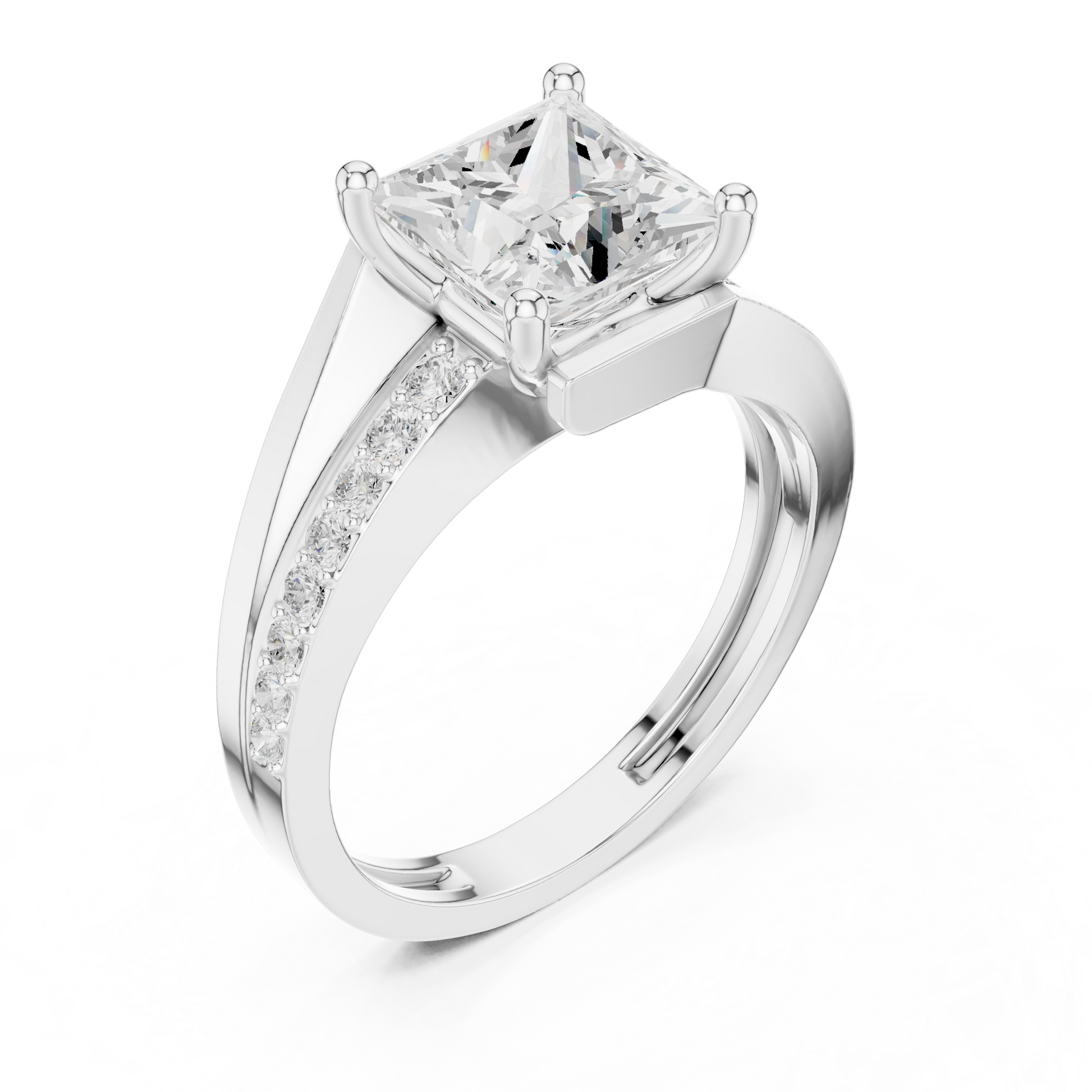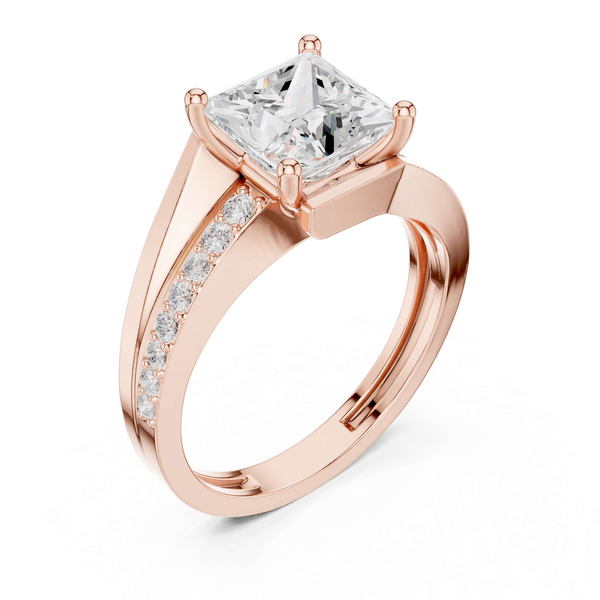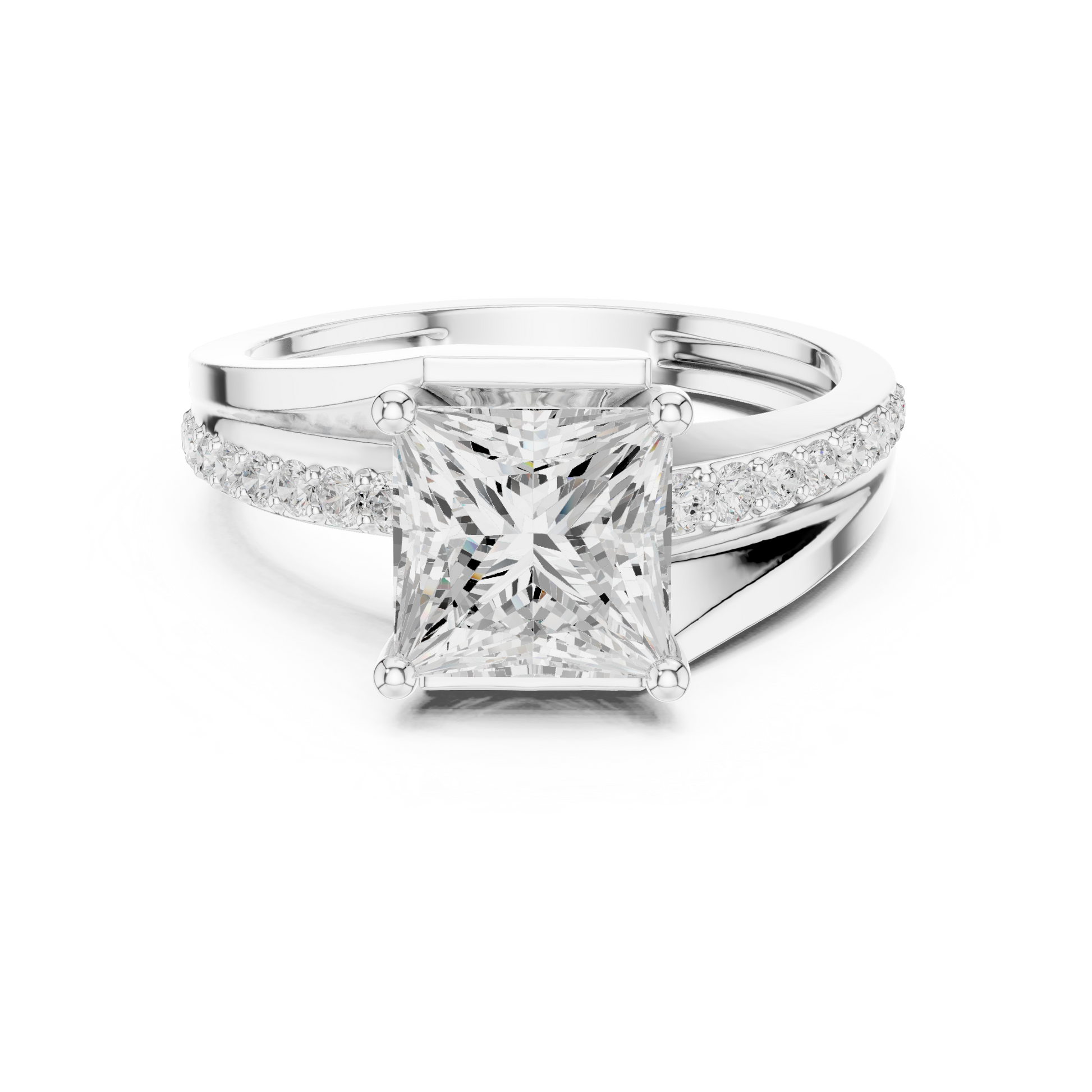 The Aurora Crest Solitaire Ring features a striking princess-cut center stone set in polished gold, enhanced by a refined split band accented with shimmering pave details. Its balanced silhouette combines modern structure with timeless elegance, making it ideal for engagements, anniversaries, or elevated everyday wear. Designed to maximize brilliance and comfort, this ring delivers a bold yet graceful presence from every angle.