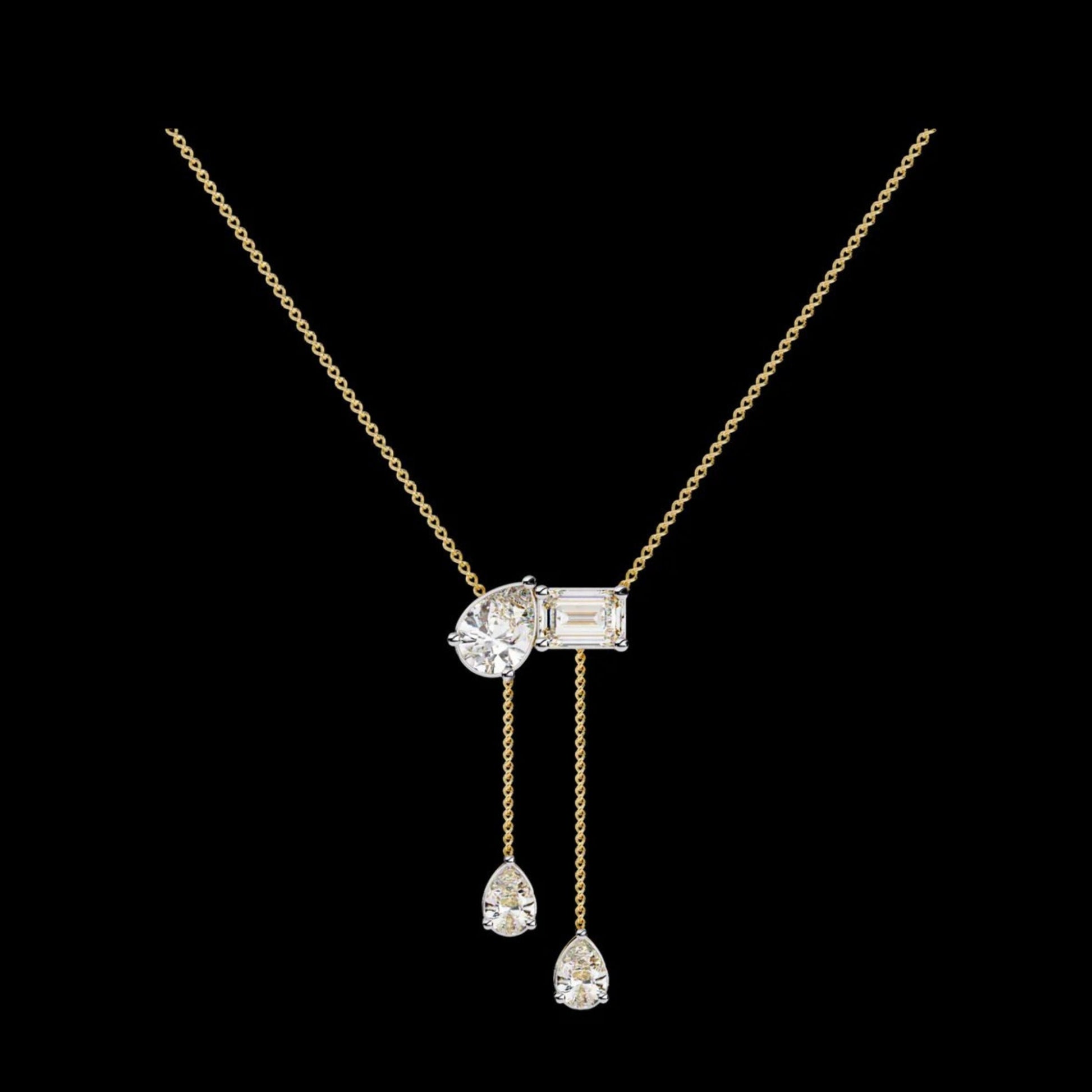 Experience pure sophistication with Ivevar Luxury’s Diamond Drop Necklace, a dazzling creation that blends modern minimalism with timeless allure. this refined design showcases a stunning pair of pear and emerald-cut diamonds suspended in a graceful dual-drop silhouette. Each diamond sparkles with unmatched brilliance, adding effortless elegance to every look. Perfect for evening wear, bridal occasions, or everyday sophistication, this necklace redefines luxury with its clean geometry and fluid form. Handcrafted using sustainable diamonds and ethically sourced it reflects Ivevar Luxury’s commitment to beauty, responsibility, and artistry.