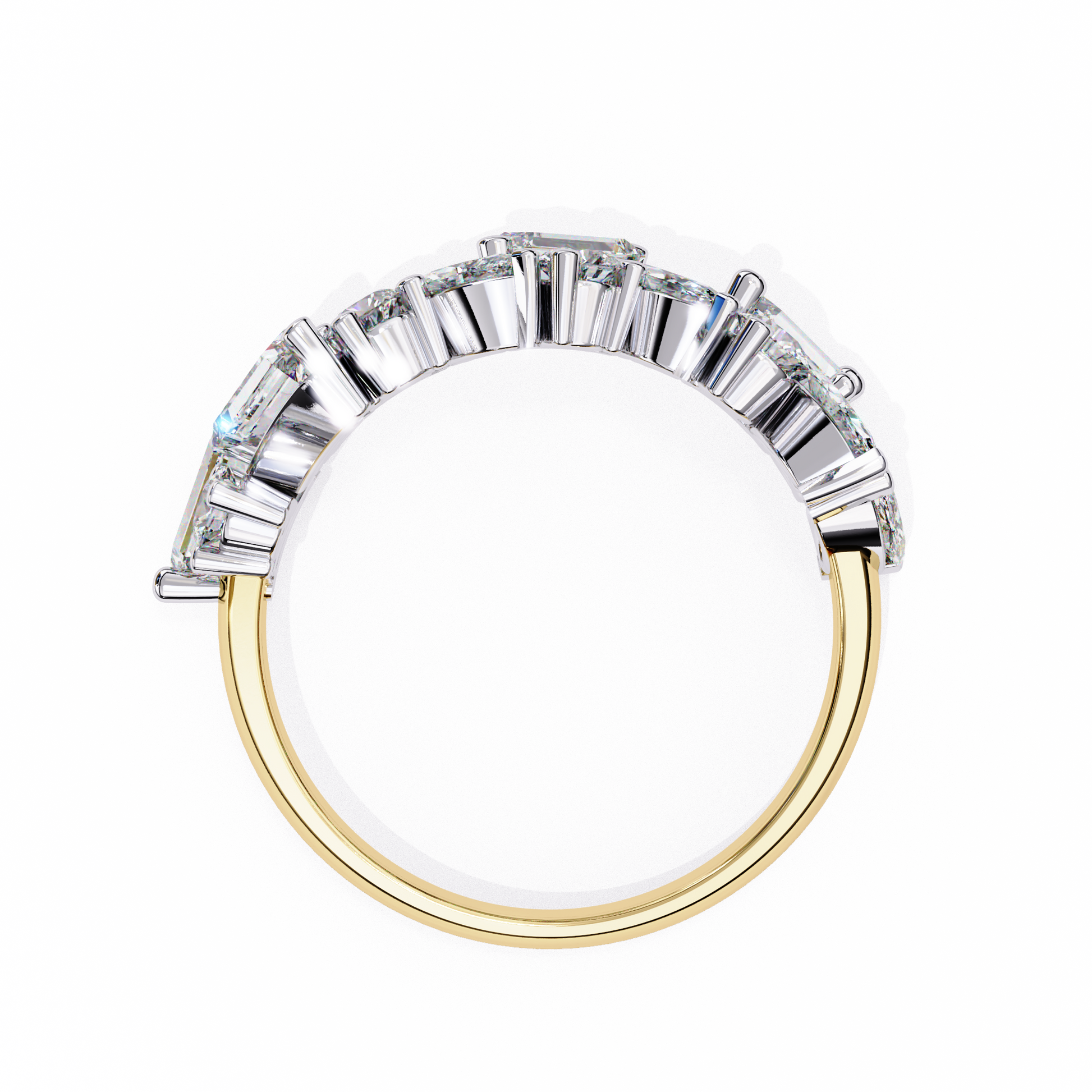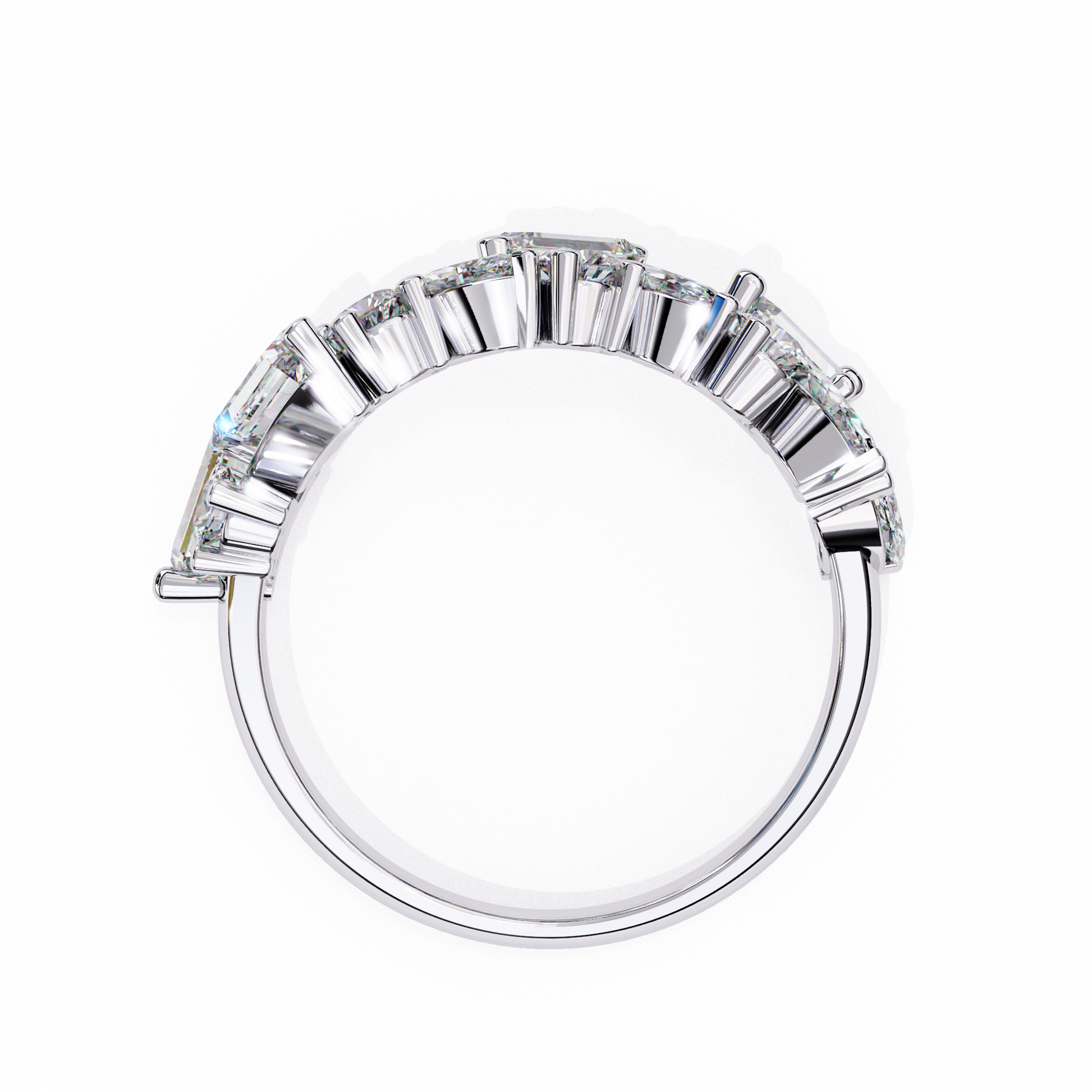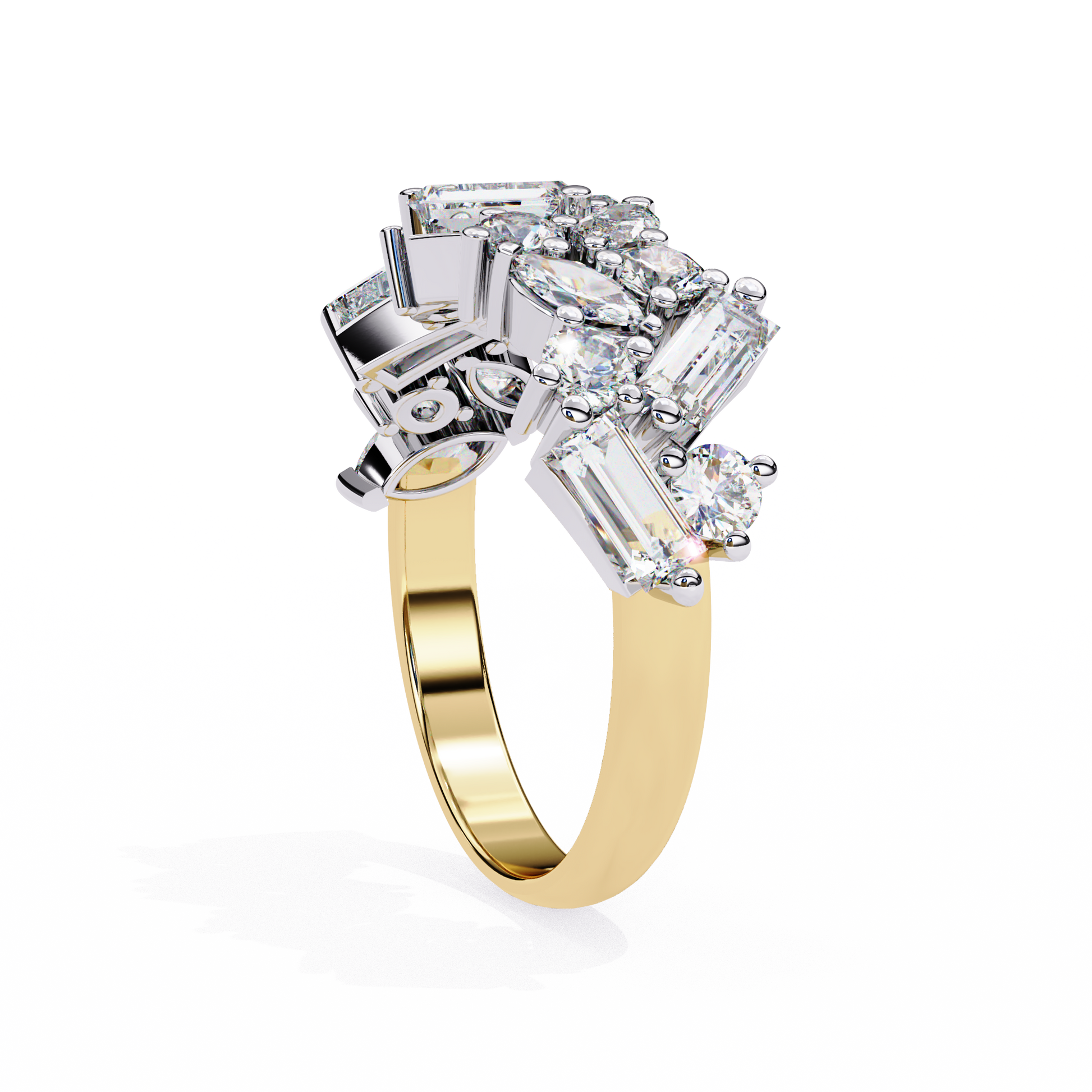 Experience unmatched brilliance with this exquisite mixed-cut diamond cluster band, featuring a striking blend of marquise, round, and baguette diamonds meticulously arranged to create a bold, multidimensional sparkle; a luxurious statement piece that unites modern artistry with timeless elegance, perfect for special occasions, anniversaries, or elevating everyday sophistication.