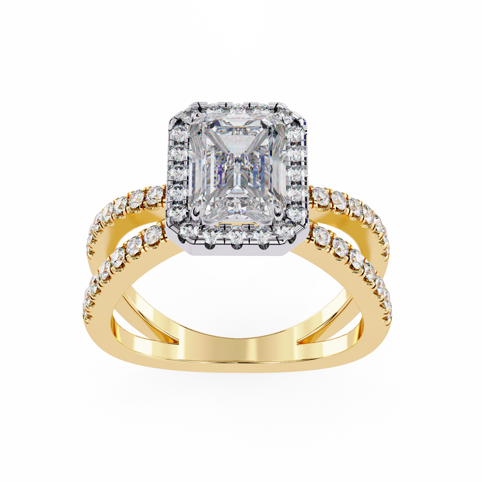 This breathtaking design from Ivevar Luxury features a brilliant emerald-cut center diamond, surrounded by a sparkling halo, and set upon a double pave band that radiates unmatched glamour. Crafted for those who adore bold luxury, high brilliance, and modern sophistication, this ring makes a stunning centerpiece for engagements, celebrations, or heirloom gifting.