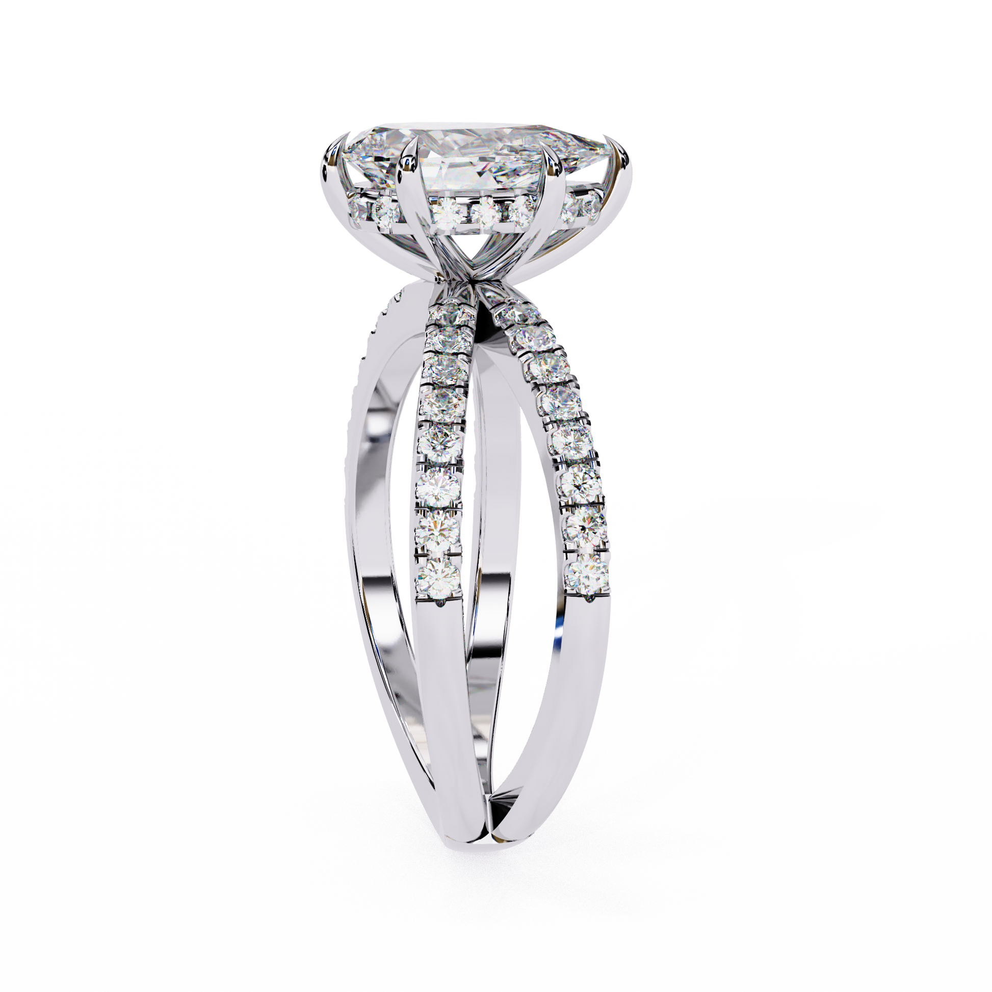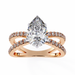 This breathtaking engagement ring features a luminous pear-cut diamond that captures attention with its extraordinary sparkle and clarity. The elegant double pave bands, adorned with rows of brilliant micro-diamonds, create a captivating frame that enhances the center stone’s radiant presence. Crafted with meticulous attention to detail, this ring exudes modern sophistication, timeless beauty, and high-end craftsmanship, making it the perfect symbol of enduring love and refined luxury.
