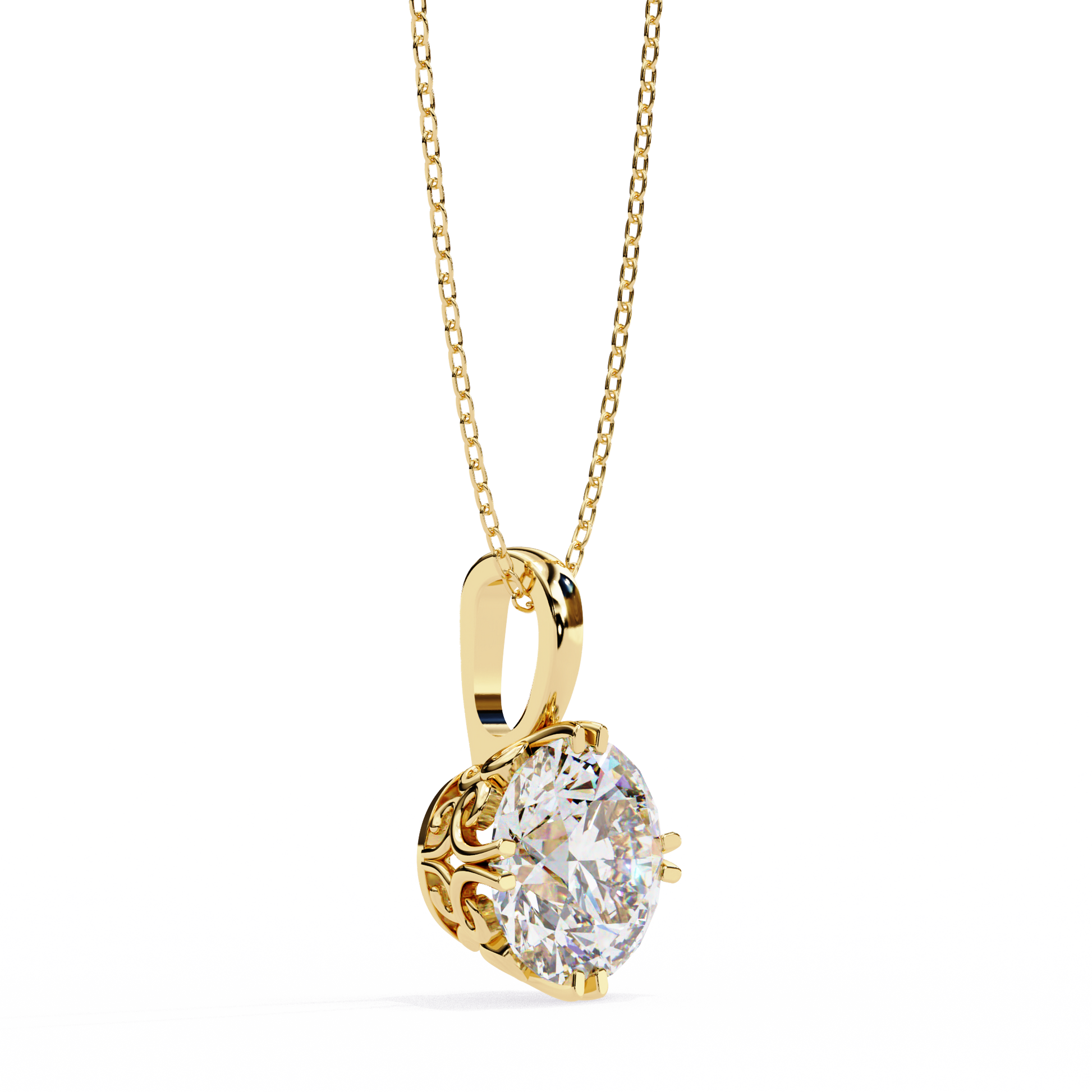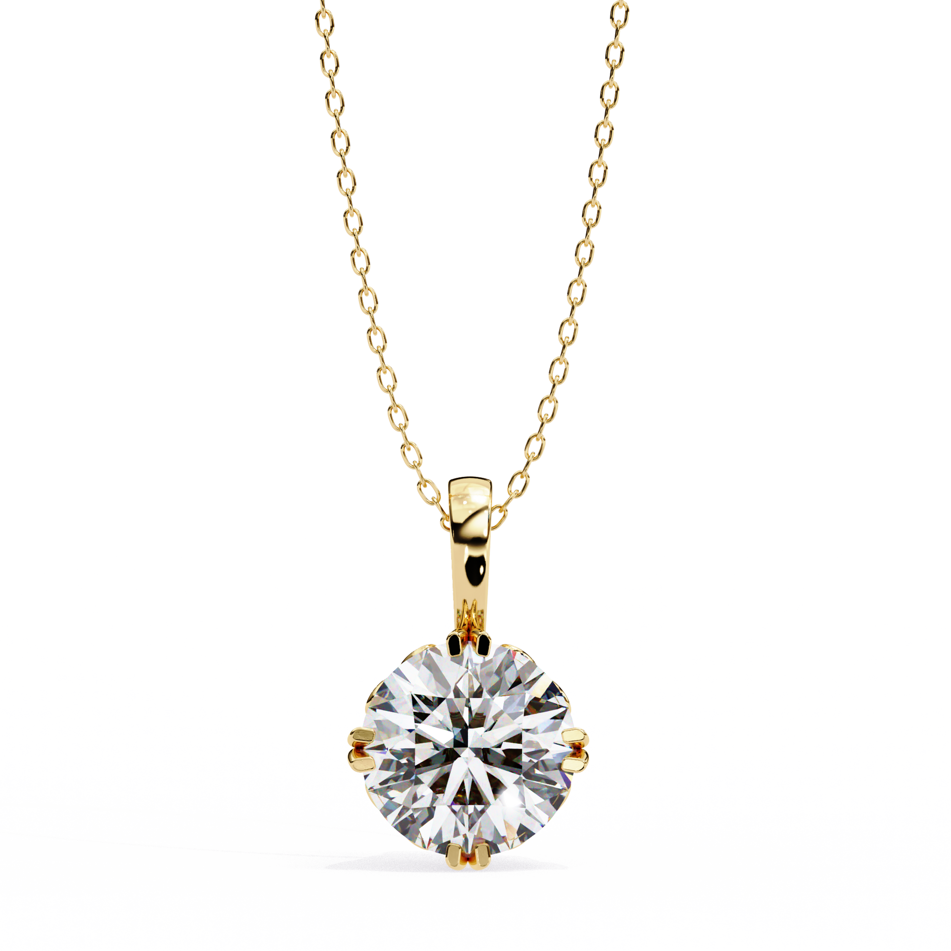 This captivating pendant features a Brilliant Round Cut Moissanite Diamond elegantly cradled in a classic four-prong gold setting, radiating timeless sophistication. The diamond’s impeccable sparkle is beautifully complemented by the warm, lustrous tone of the gold, creating a perfect harmony of light and luxury. Its sleek bail design ensures a graceful drape on any chain, making it an exquisite piece that embodies refined elegance and enduring charm by Ivevar.
