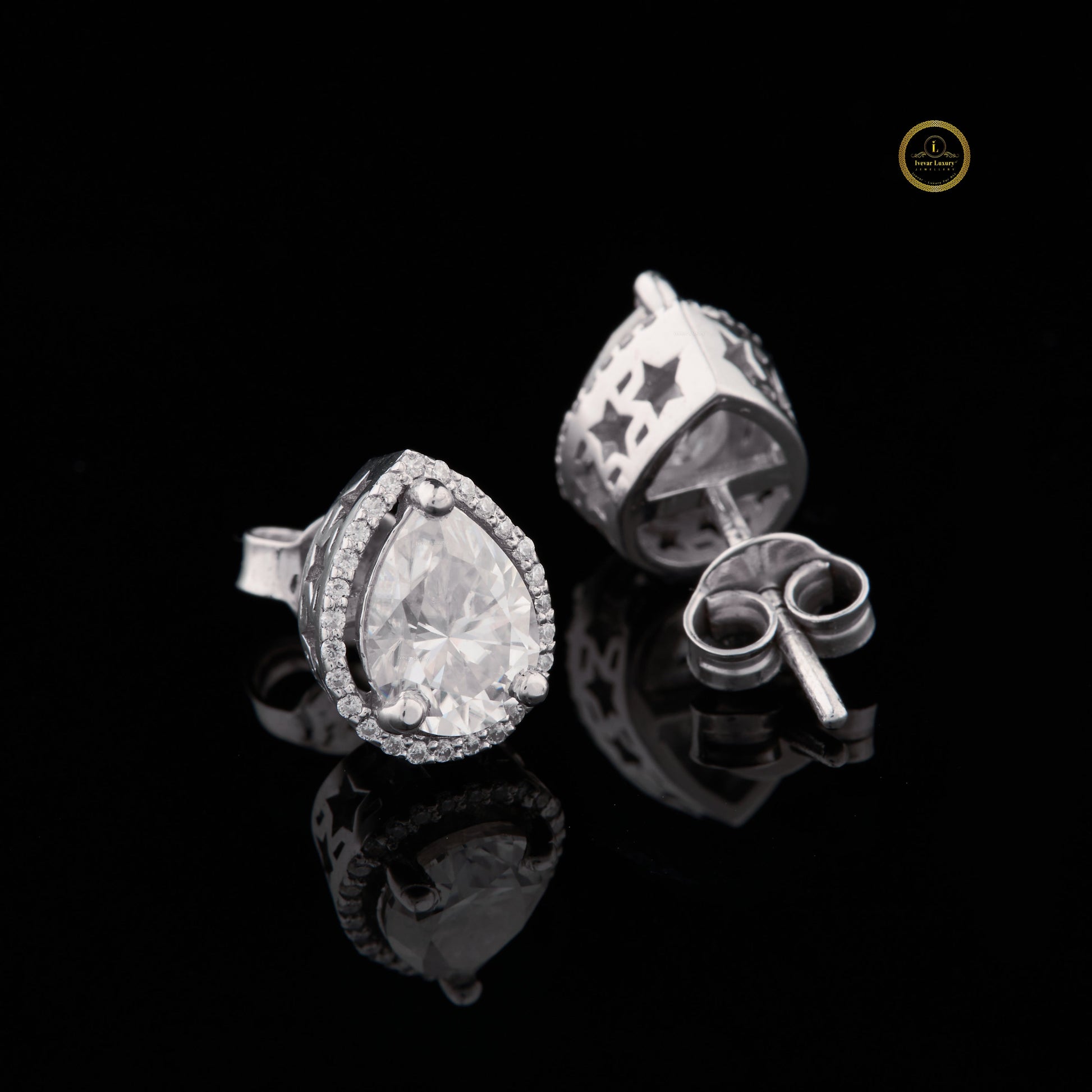 These pear-shaped halo diamond stud earrings showcase a beautifully elongated teardrop silhouette, highlighted by a shimmering halo that enhances the natural brilliance of the center stones. Their elegant curves and radiant sparkle create a refined and feminine look, making them perfect for both special occasions and sophisticated everyday wear. Crafted to catch the light from every angle, these earrings add timeless charm and luxury to any jewelry collection.