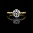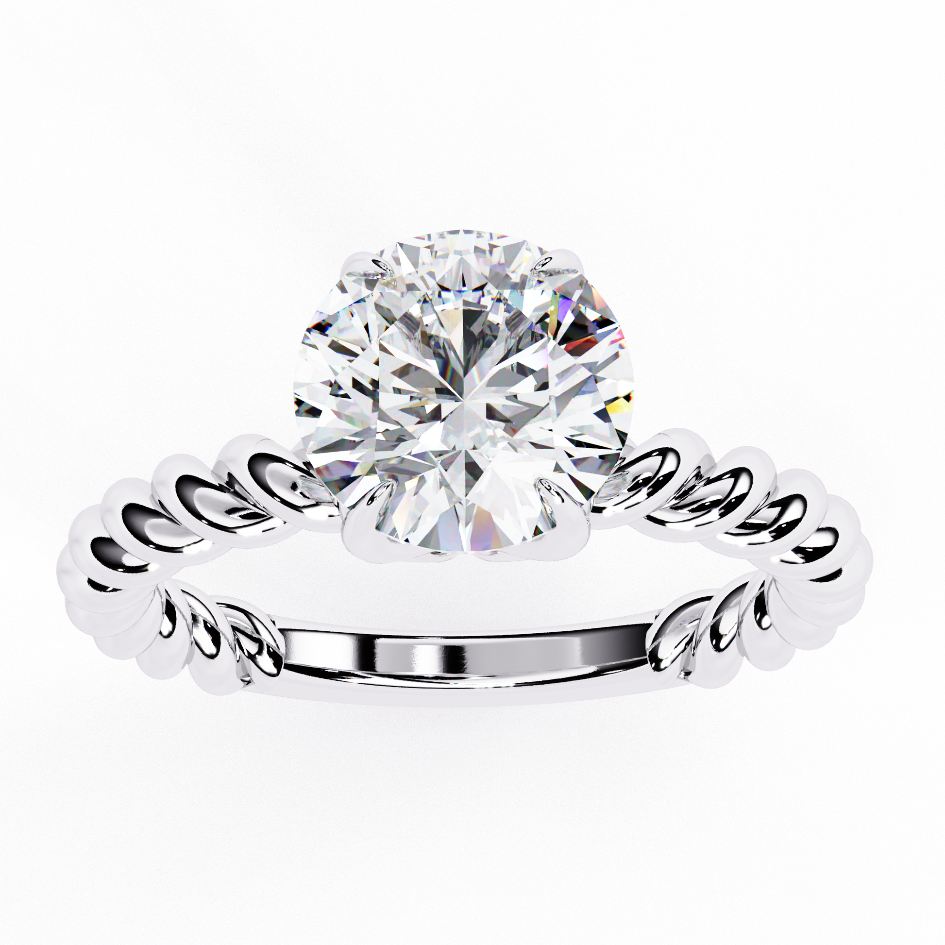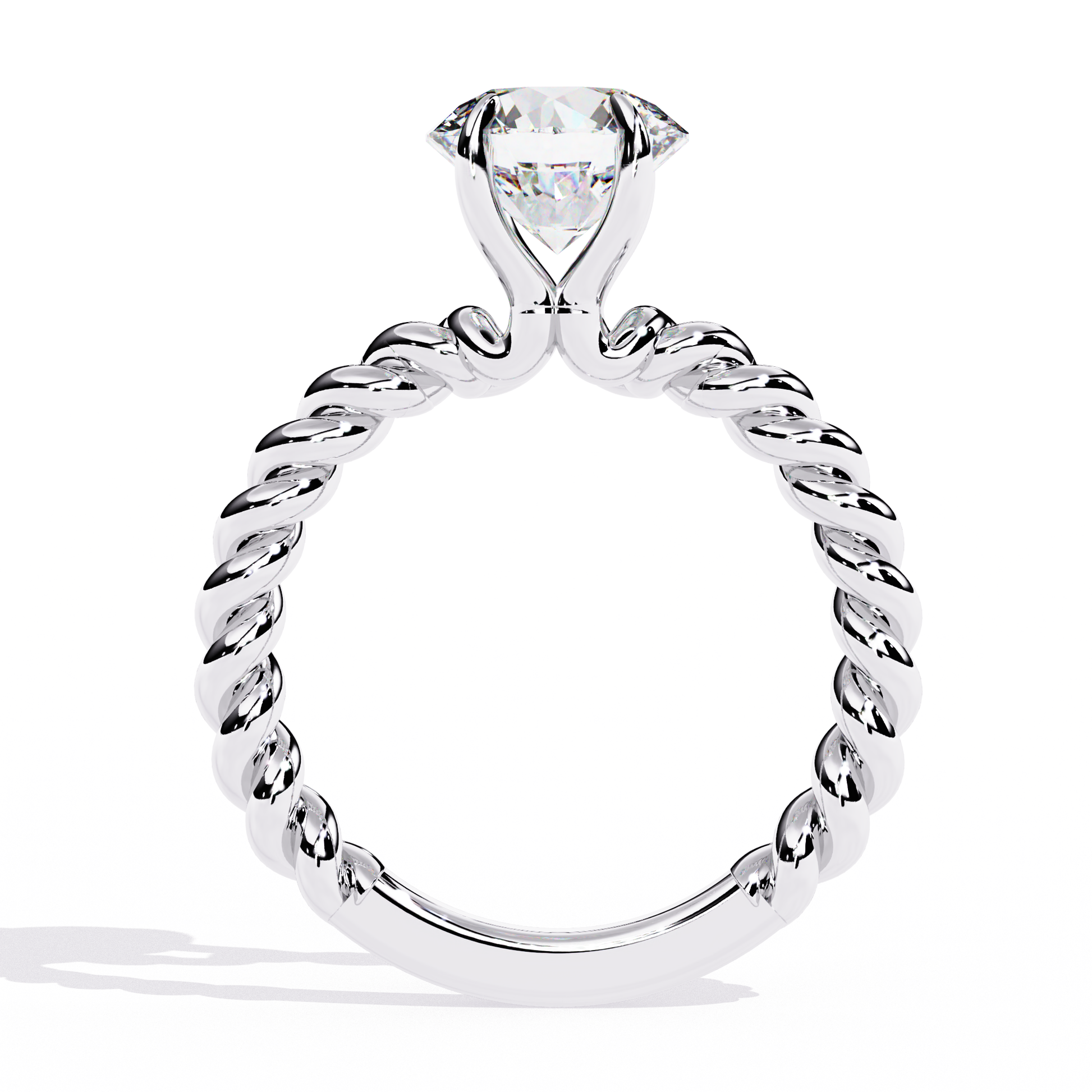 This captivating ring showcases a brilliant round-cut diamond set atop a uniquely designed twisted band, creating a perfect blend of elegance and modern artistry. The central diamond delivers exceptional sparkle, while the twisted band adds a touch of sophisticated charm and distinctive craftsmanship. Ideal for those seeking a piece that reflects luxury, timeless beauty, and individual style, this ring makes a stunning choice for an engagement, anniversary, or special celebration.