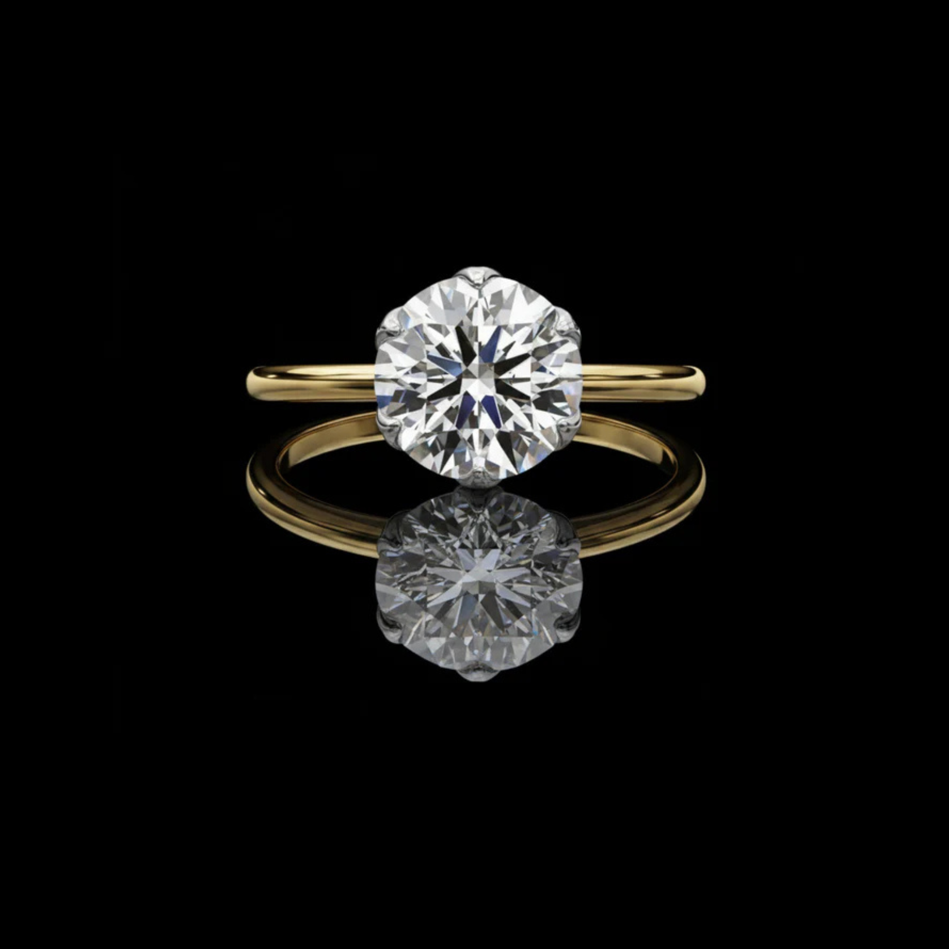 This beautifully crafted solitaire diamond ring features a stunning round-cut centerpiece that radiates exceptional brilliance and clarity. Set atop a refined band, the design emphasizes simplicity and timeless elegance, making it a perfect choice for engagements or meaningful milestones. The minimalist band enhances the diamond’s natural sparkle, while the expert craftsmanship ensures lasting quality and luxury. Ideal for those who appreciate classic, refined style with an elegant modern touch.