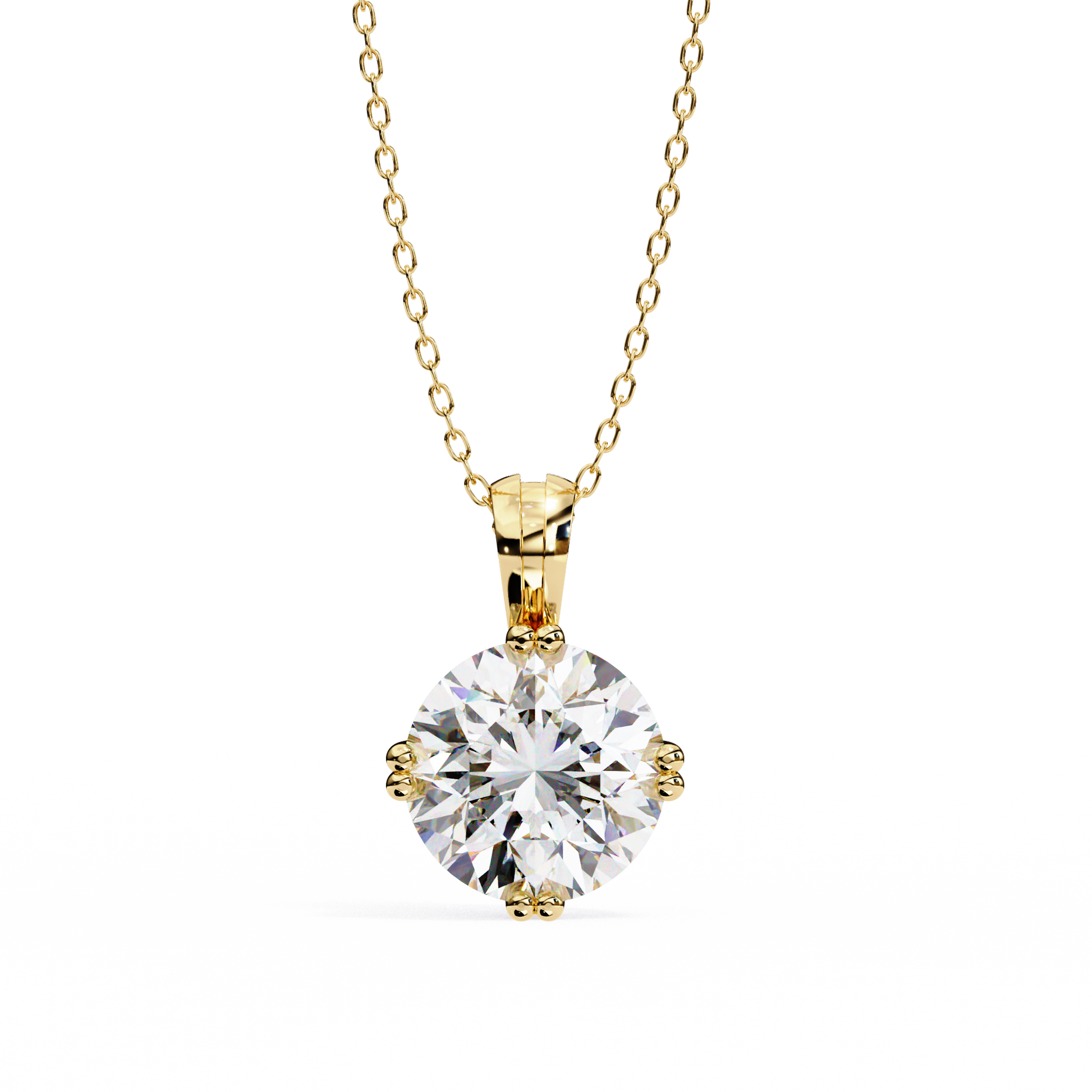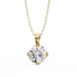 This elegant pendant features a brilliant round-cut gemstone set in a classic four-prong gold mounting that beautifully highlights its sparkle. The polished gold bail adds a touch of refinement, allowing the stone to take center stage while offering a secure and graceful way to wear it on a chain. Its timeless design combines simplicity with sophistication, making it a versatile piece suitable for both everyday elegance and special occasions by Ivevar Luxury.