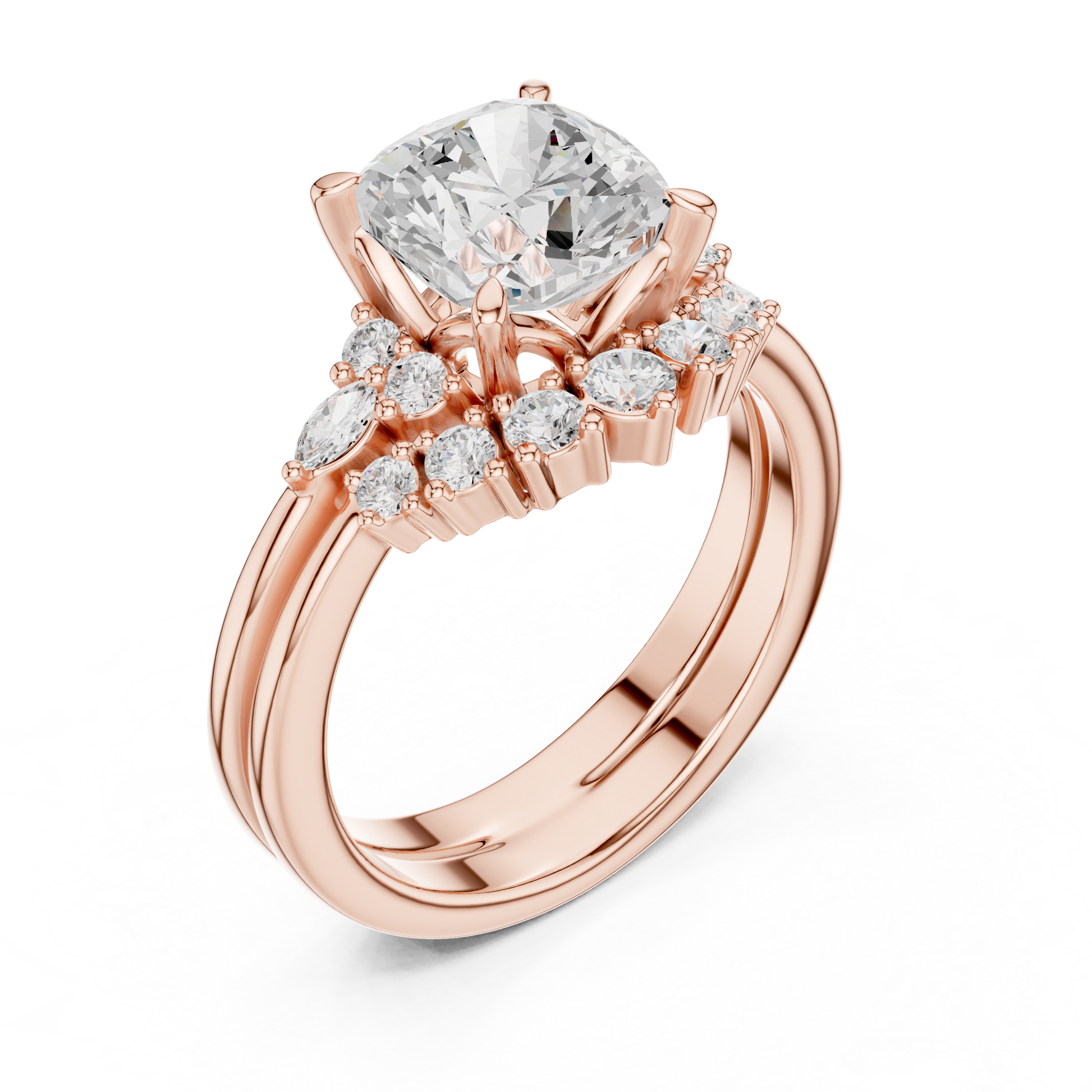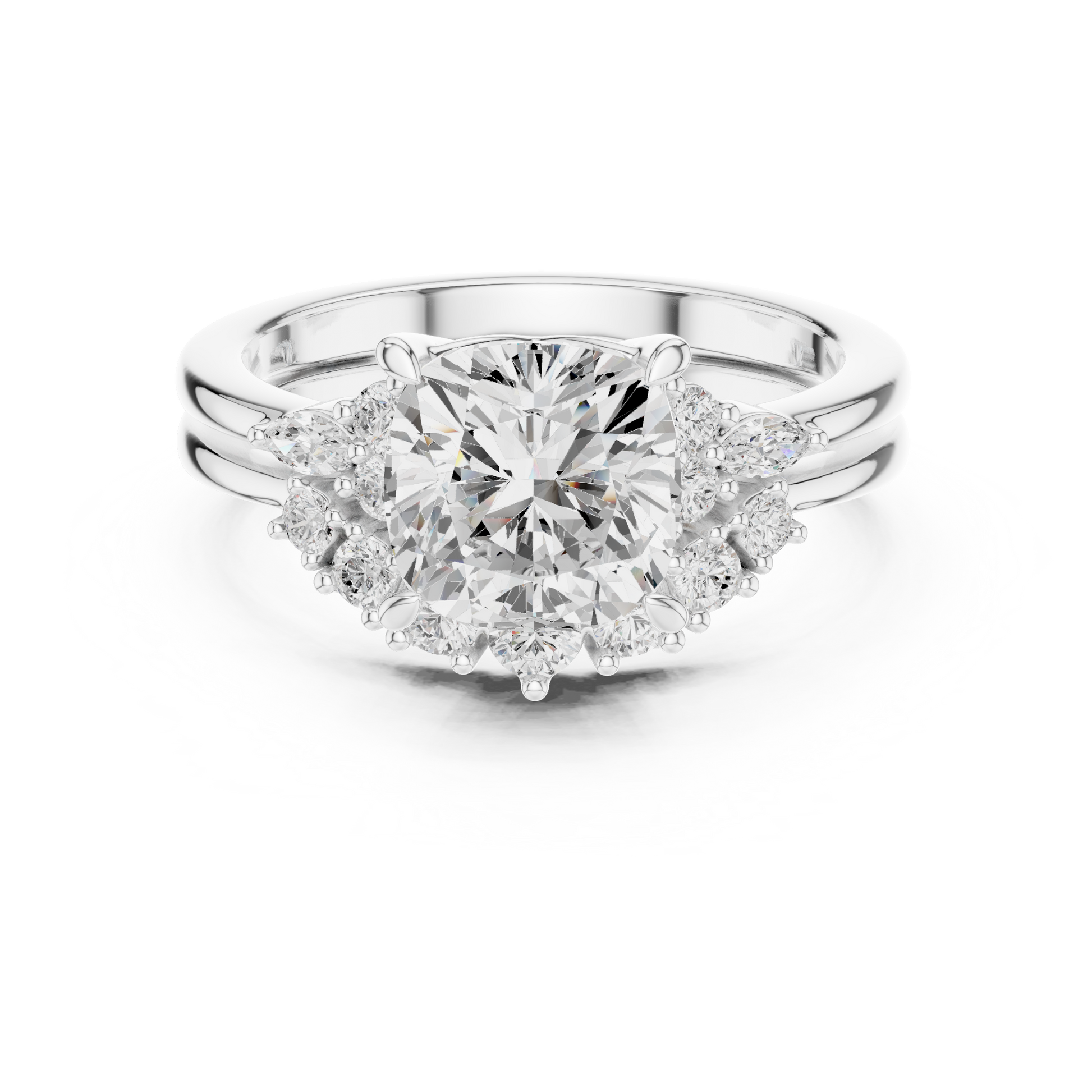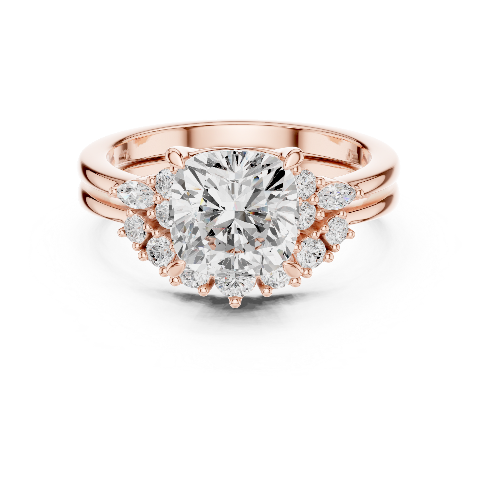 This stunning engagement ring features a radiant cushion square-cut center diamond embraced by a sparkling halo of petite diamonds, creating exceptional brilliance and visual depth. Crafted in polished gold, the elegant split-style shoulders add balance and refinement while enhancing the center stone’s presence. Timeless yet luxurious, this ring blends classic halo design with modern sophistication, making it a breathtaking symbol of love, commitment, and enduring elegance.