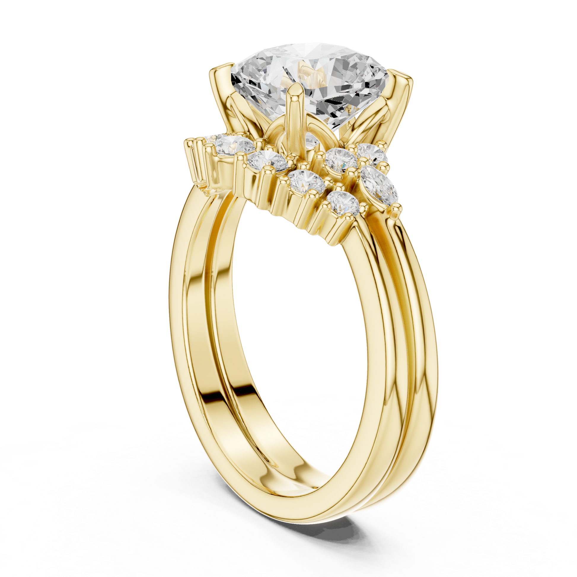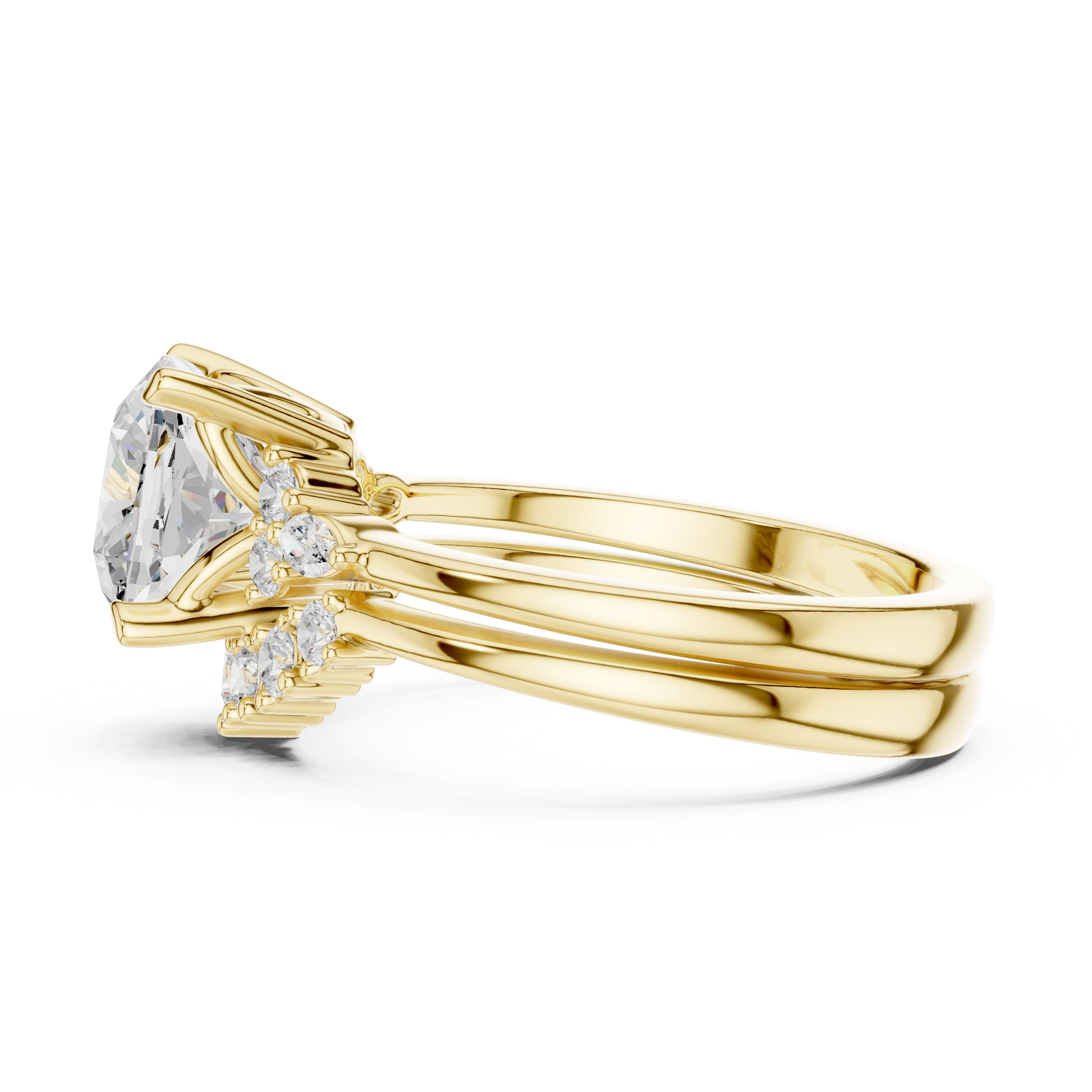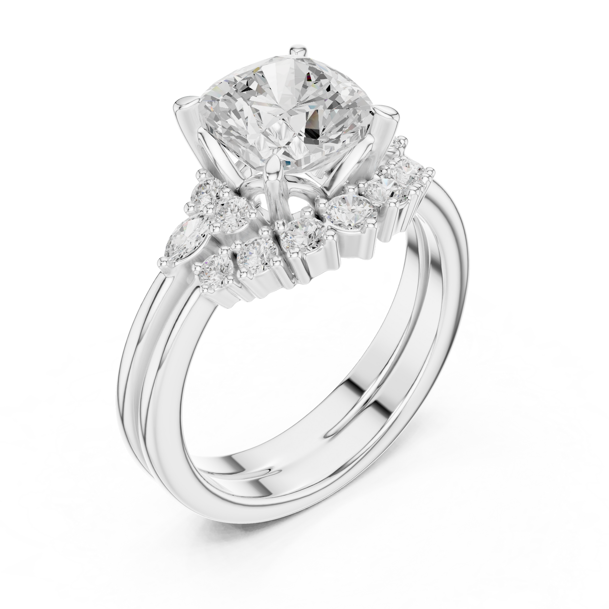 This stunning engagement ring features a radiant cushion square-cut center diamond embraced by a sparkling halo of petite diamonds, creating exceptional brilliance and visual depth. Crafted in polished gold, the elegant split-style shoulders add balance and refinement while enhancing the center stone’s presence. Timeless yet luxurious, this ring blends classic halo design with modern sophistication, making it a breathtaking symbol of love, commitment, and enduring elegance.