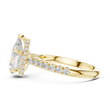 This exquisite pear-cut diamond engagement ring is a true statement of elegance and refined craftsmanship. Designed with a radiant gold band, the ring features a beautifully elevated cathedral setting accented with sparkling pavé diamonds along the shank. The pear-shaped center stone is perfectly secured, creating a graceful silhouette that catches light from every angle.