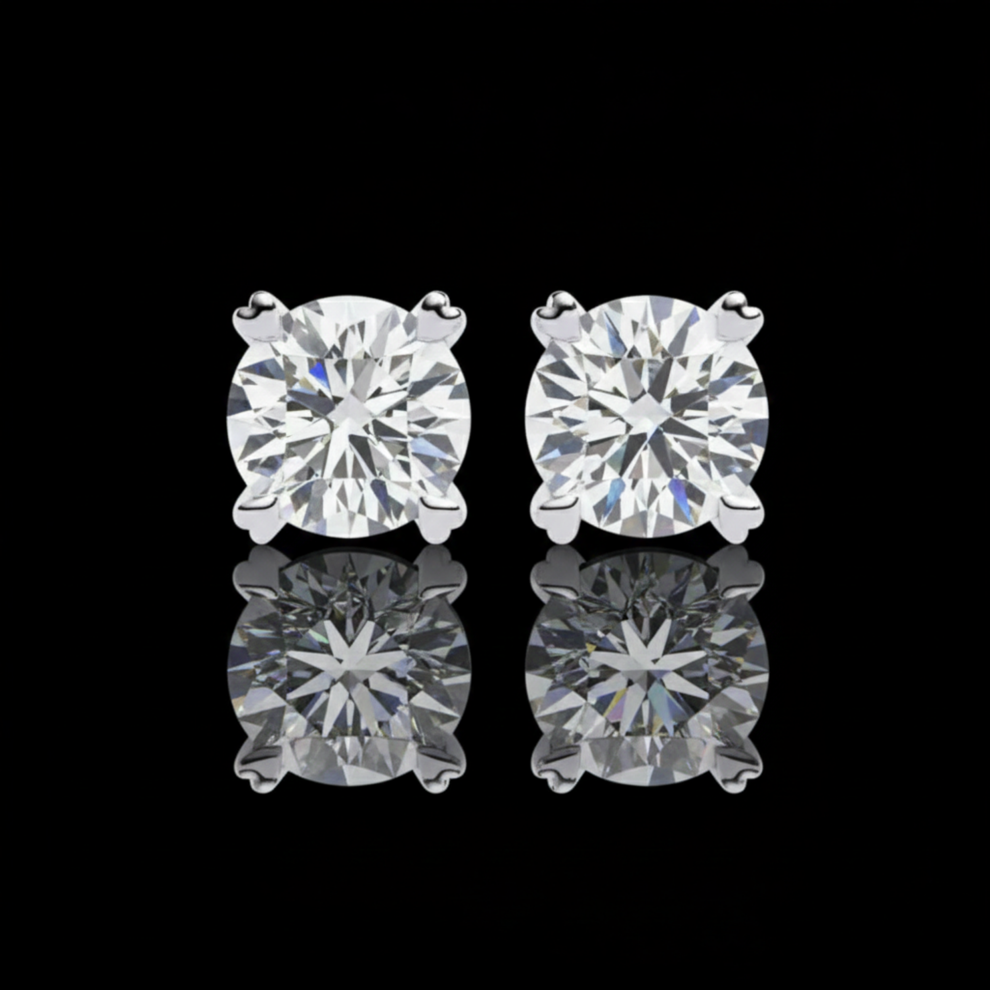 This earring features a pair of elegant round-cut diamond stud earrings set in sleek white gold prongs. The diamonds showcase brilliant sparkle and clarity, making these timeless earrings a perfect accessory for both everyday wear and special occasions. Their minimalist yet luxurious design highlights the natural beauty of the stones.