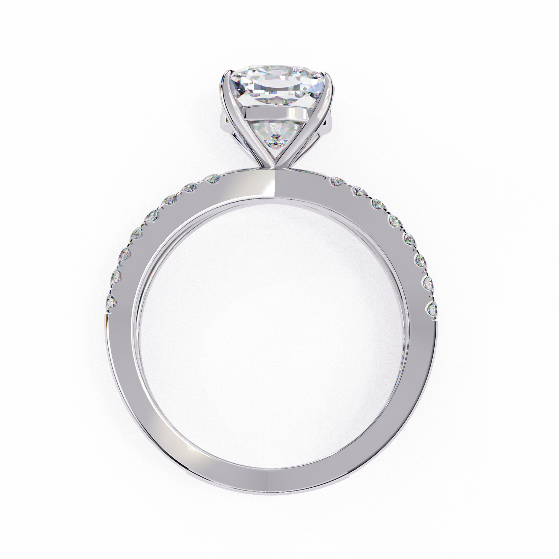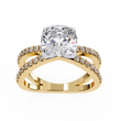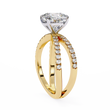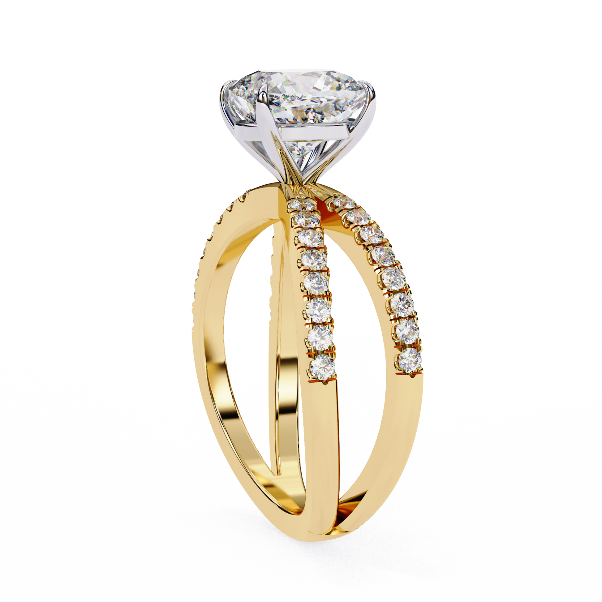 This exquisite ring showcases a brilliant cushion-cut diamond at its center, set in a secure prong setting that highlights its depth, sparkle, and fire. The band features a luxurious split-shank design crafted in radiant gold, each arm adorned with a row of meticulously set round diamonds that enhance the ring’s overall brilliance. The combination of the soft, elegant cushion silhouette with the modern diamond-studded split band creates a perfect balance of timeless sophistication and contemporary glamour, making this piece an unforgettable symbol of refined luxury by Ivevar.