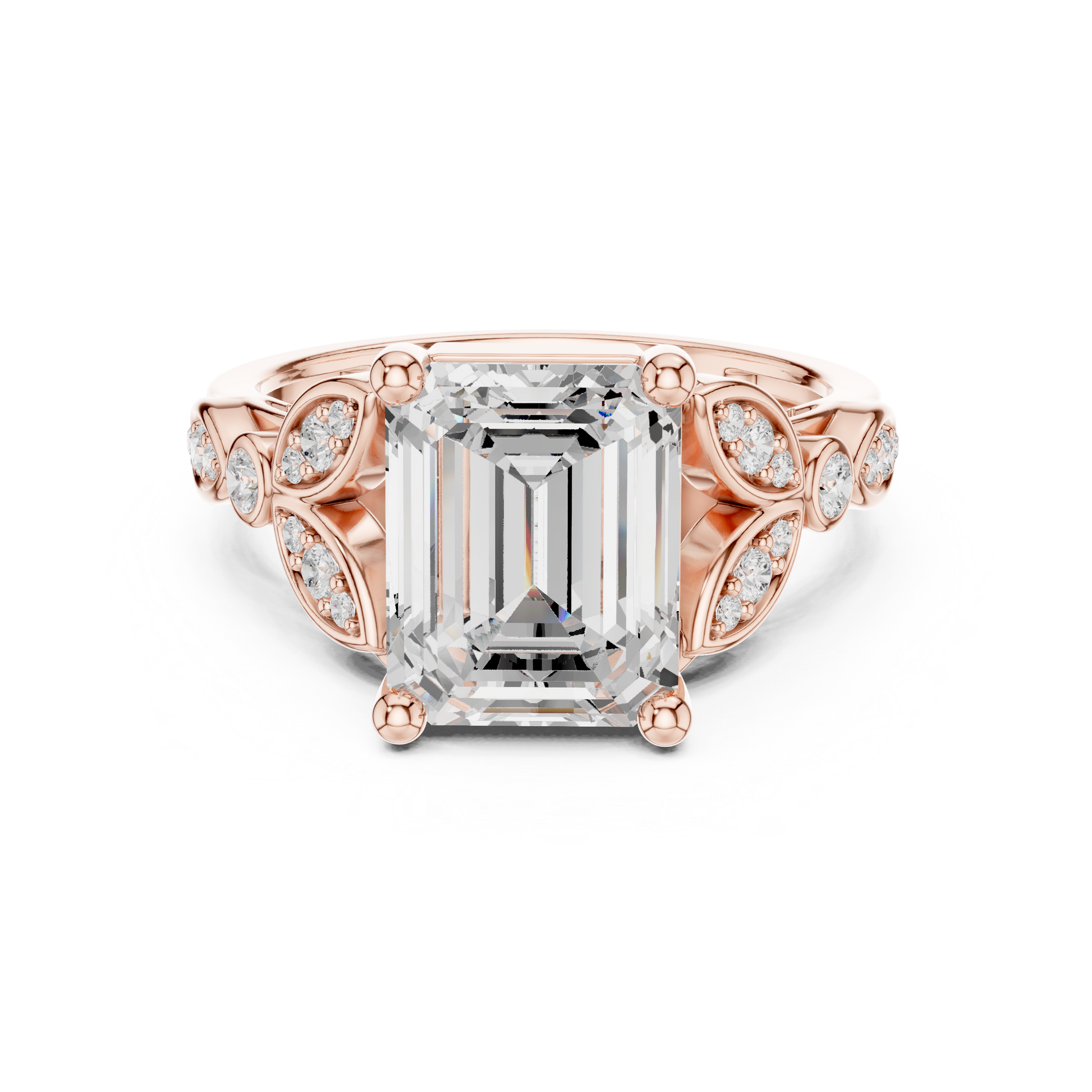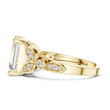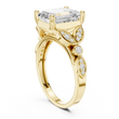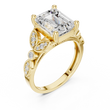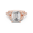 The Imperial Aura Diamond Ring features a striking emerald-cut center stone set in rich gold, framed by intricate sculpted shoulders adorned with sparkling accent diamonds. Its architectural design blends vintage inspiration with modern refinement, creating a bold yet elegant presence. Perfect as an engagement ring or heirloom statement piece, this ring delivers exceptional brilliance, depth, and luxurious character from every angle.