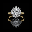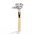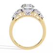 This captivating ring features a brilliant round center diamond accented by a stunning half sunburst halo of sparkling stones, creating a radiant, crown-like effect. The pear-shaped and round accent diamonds add depth and elegance, while the yellow gold band offers a warm, timeless contrast. Perfect for someone who wants a ring that feels unique, regal, and undeniably eye-catching.