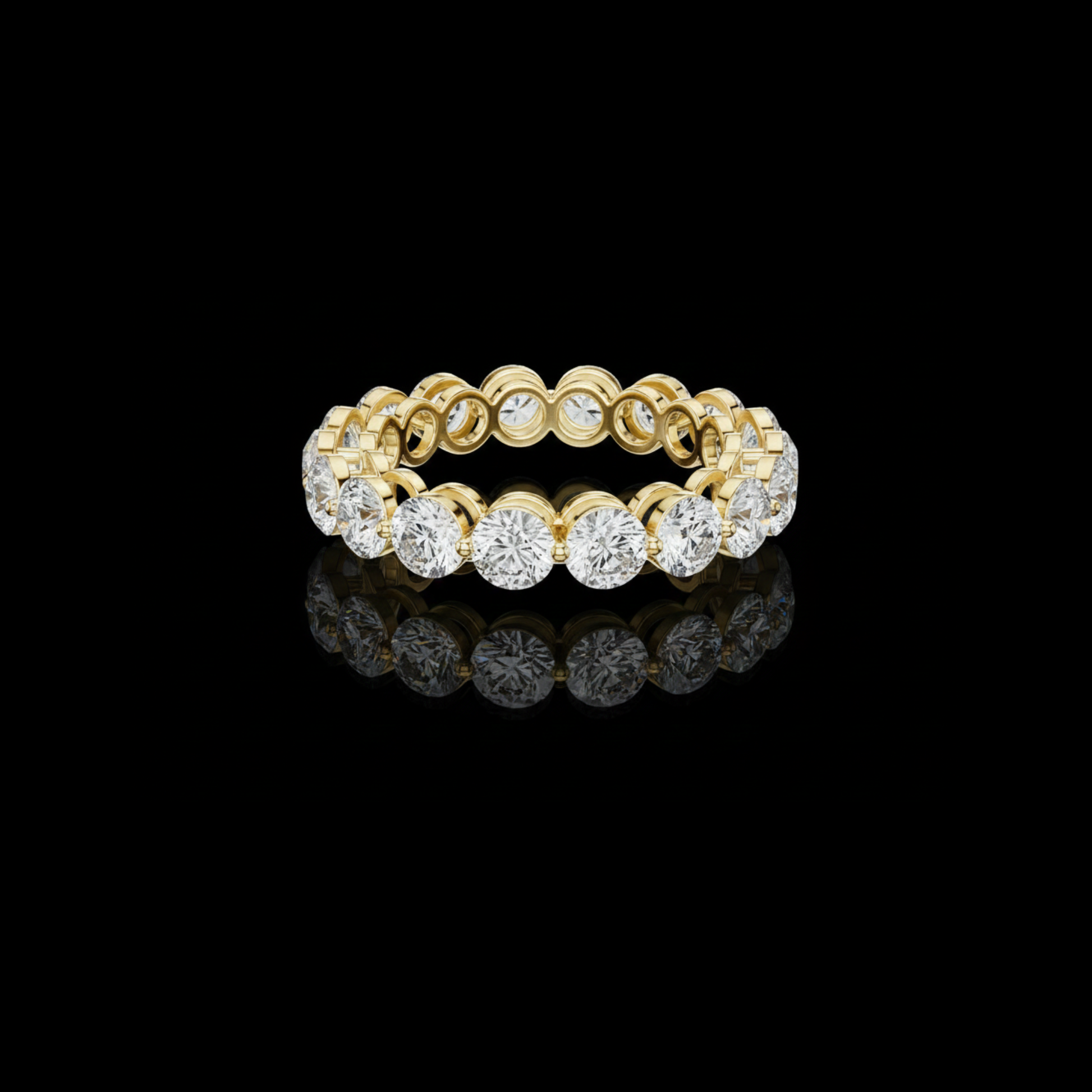 This elegant eternity ring showcases a continuous circle of round brilliant-cut diamonds, each meticulously set in polished gold to create a seamless band of radiant sparkle. The open gallery design allows light to pass freely through every diamond, enhancing brilliance while providing a refined, contemporary profile. Perfect as a wedding band, anniversary ring, or a luxurious stacking piece, this timeless design symbolizes enduring love and sophistication with a bold yet graceful presence by Ivevar Luxury.