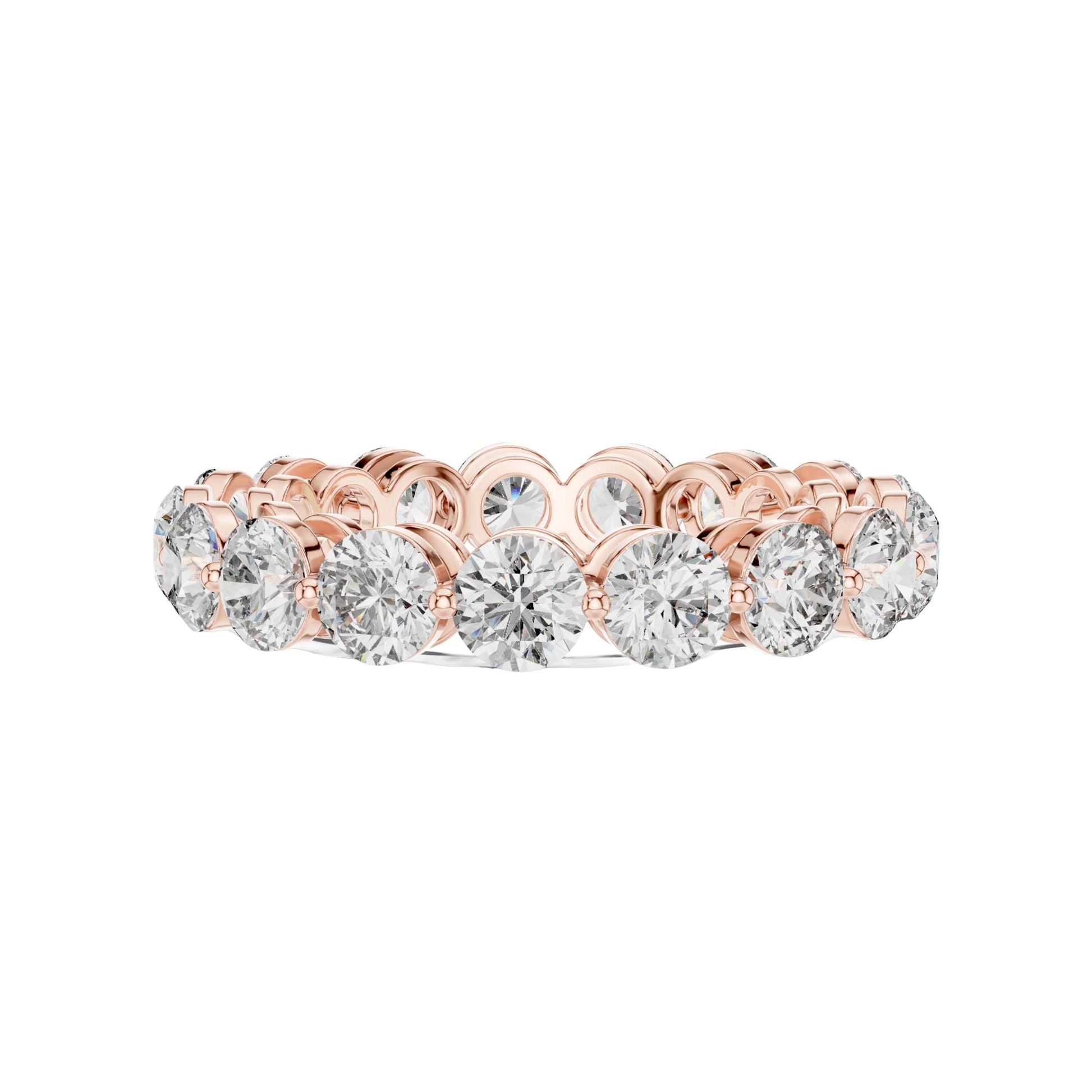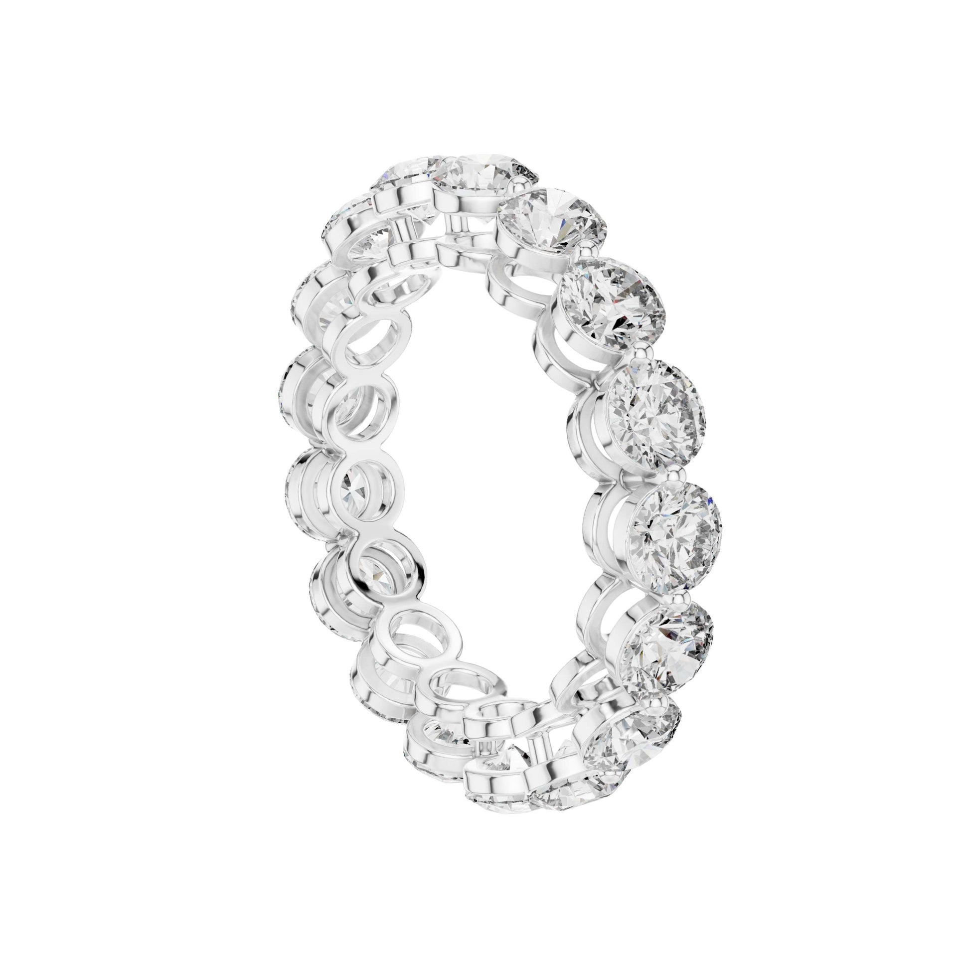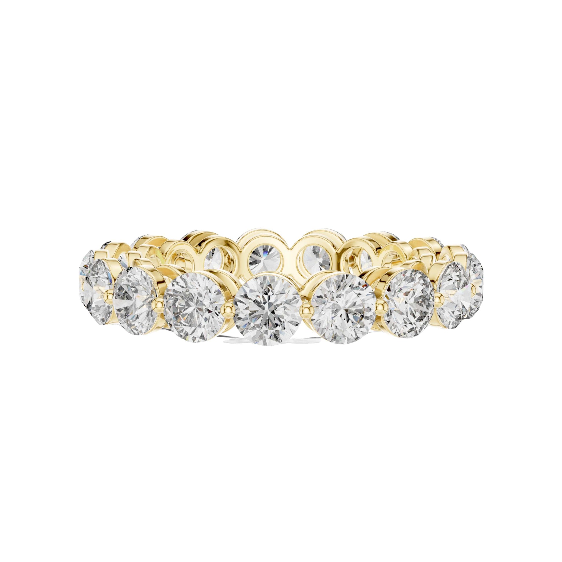 This elegant eternity ring showcases a continuous circle of round brilliant-cut diamonds, each meticulously set in polished gold to create a seamless band of radiant sparkle. The open gallery design allows light to pass freely through every diamond, enhancing brilliance while providing a refined, contemporary profile. Perfect as a wedding band, anniversary ring, or a luxurious stacking piece, this timeless design symbolizes enduring love and sophistication with a bold yet graceful presence by Ivevar Luxury.