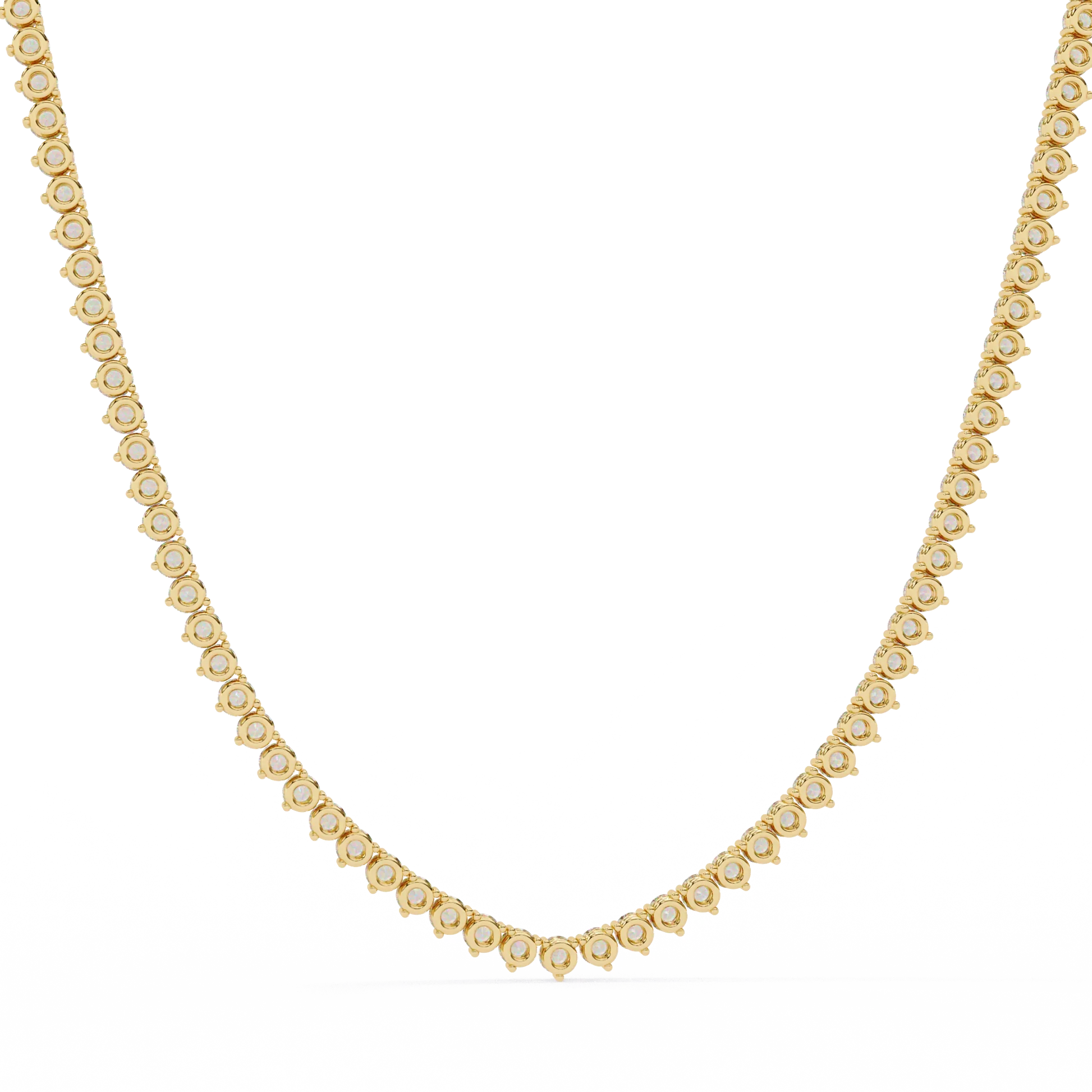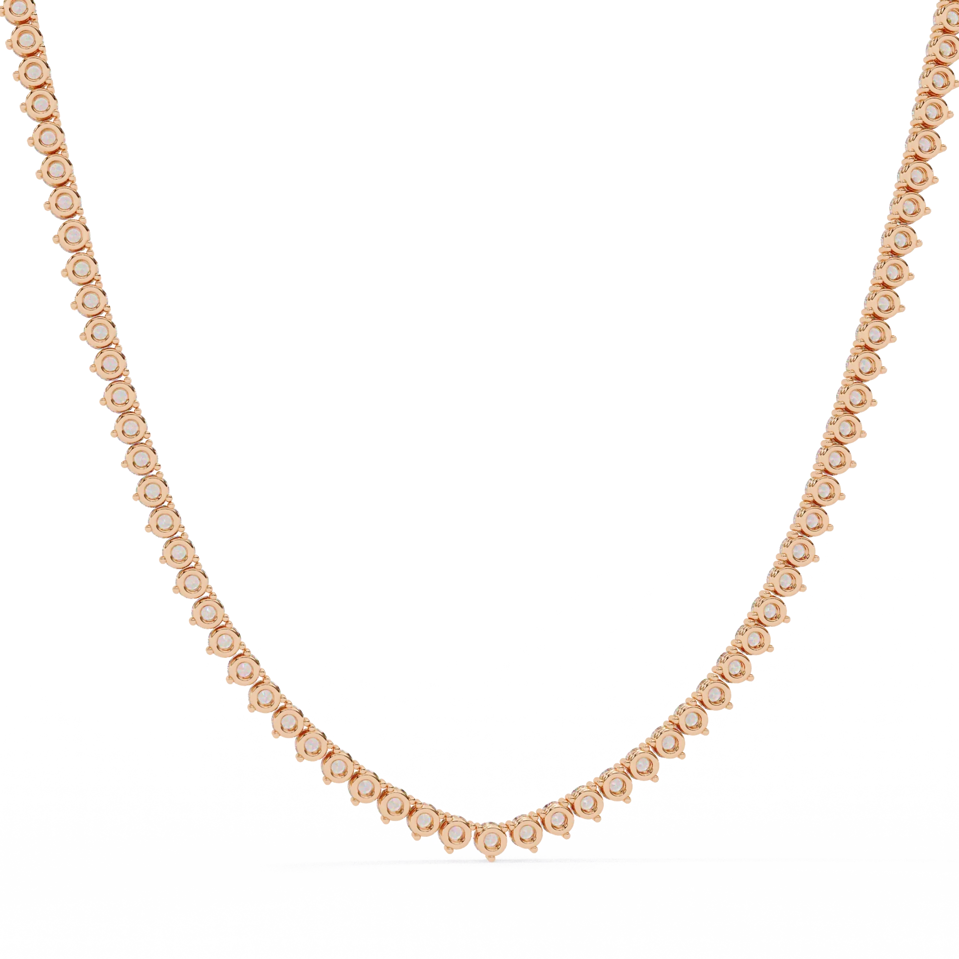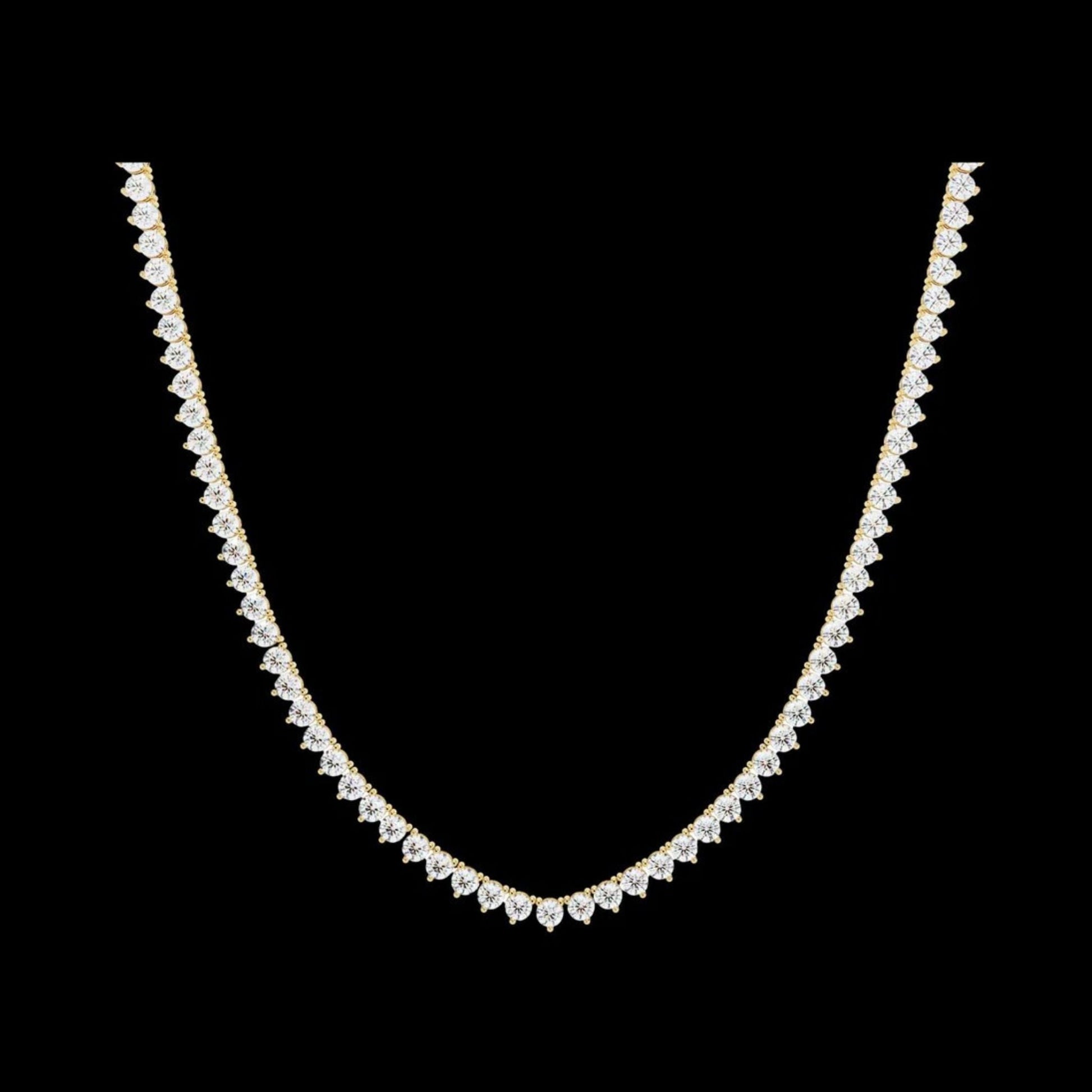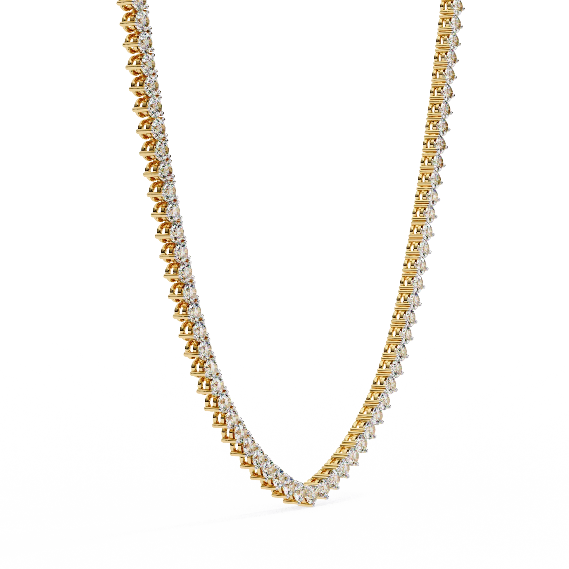 This stunning necklace radiates timeless sophistication, featuring a delicate strand of perfectly matched Round Shaped Diamonds set in gleaming gold. Each stone is meticulously arranged to create a graceful, shimmering silhouette that enhances the neckline with refined brilliance. The elegant tapering design captures light from every angle, offering a luxurious sparkle that’s ideal for both grand occasions and everyday elegance. A masterpiece of craftsmanship and classic beauty by Ivevar Luxury.
