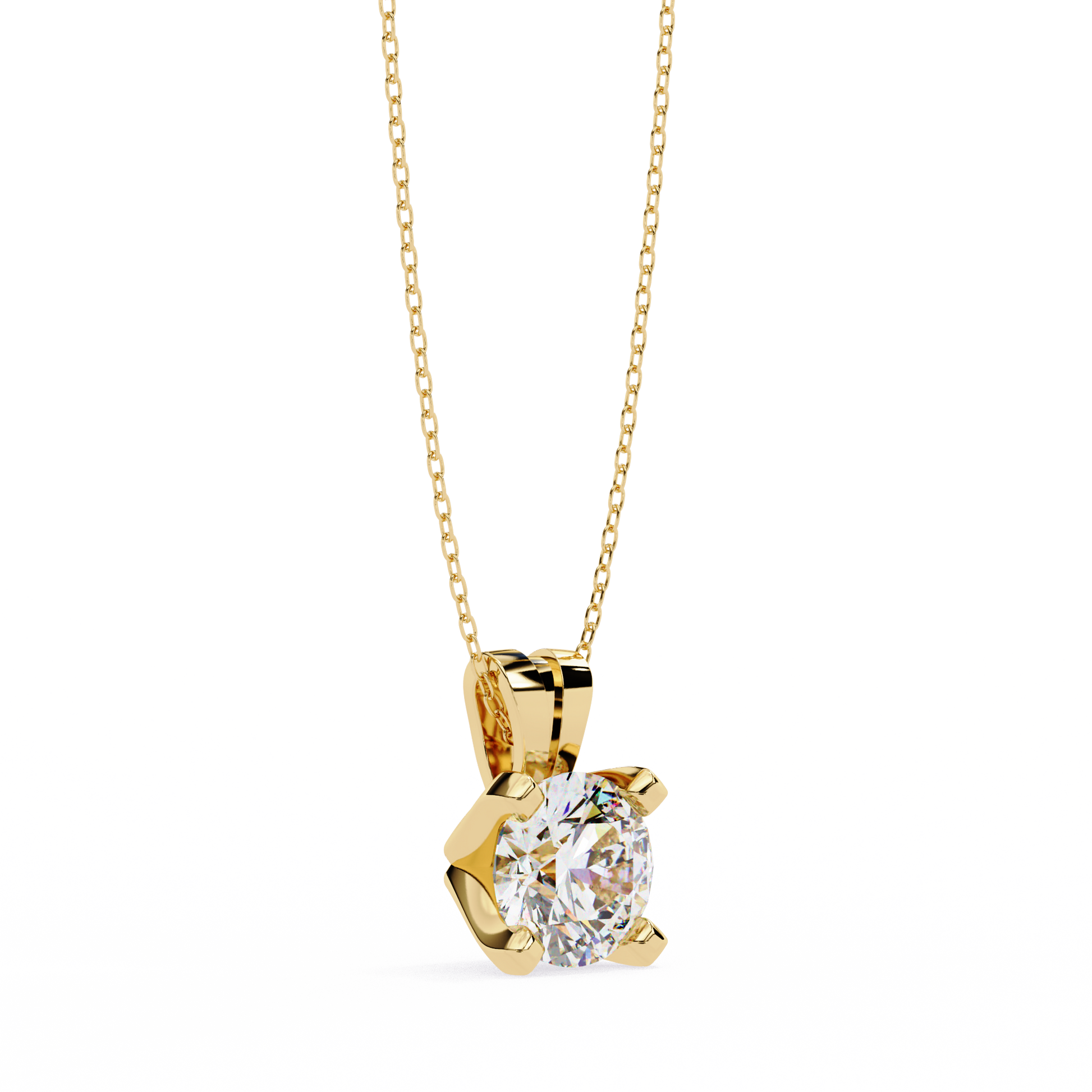 This exquisite pendant radiates sophistication and grace, featuring a Dazzling Round Cut gemstone elegantly cradled in a refined four-prong gold setting. The flawless craftsmanship enhances the stone’s brilliance, allowing every facet to capture and reflect light with mesmerizing intensity. The sleek gold bail adds a contemporary touch to its timeless design, making it a versatile piece that complements both modern and classic styles of Ivevar Luxury. A true embodiment of luxury and elegance, this pendant is designed to illuminate any ensemble with enduring beauty and brilliance.