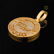 luxurious custom pendant, likely crafted from gold-plated or solid gold metal. The design is a large, circular piece heavily embellished with pave-set lab-grown diamonds, offering a high-carat, brilliant appearance at a more accessible price point than lab grown diamonds.