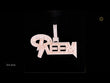 This is a luxurious and large custom nameplate pendant spelling out the name "REEM" in a combination of flowing script and block letters. It is set in a striking rose gold metal finish.