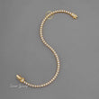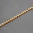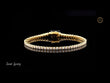 This timeless piece features a single, continuous line of uniformly sized, brilliant round lab-grown diamonds, each individually set in a secure, low-profile four-prong setting. The entire bracelet is crafted in a warm gold-toned metal, likely yellow gold, which beautifully complements the sparkle of the diamonds. Its flexible design allows it to drape elegantly on the wrist. A clean, box-style clasp is visible, ensuring a secure closure. This design is an iconic staple, known for its effortless elegance and suitability for both everyday wear and special occasions.