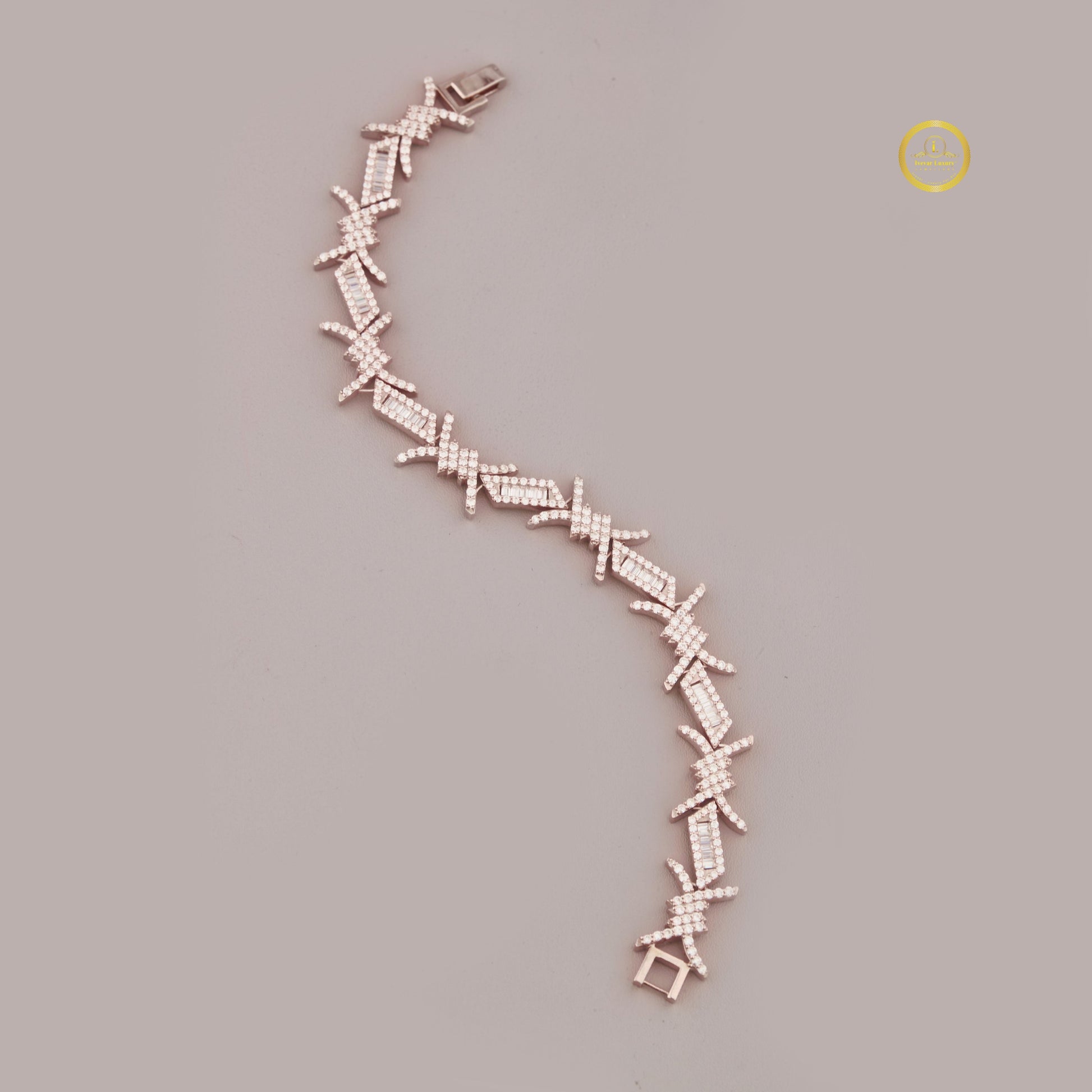 This bracelet is a striking lab-grown diamond bracelet with a bold, contemporary design that resembles barbed wire or stylized star/spike shapes. It features a continuous link pattern crafted in a rose gold-tone metal.