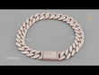 This heavy, luxurious bracelet features the timeless Cuban link design, crafted in a rose gold-tone metal. The entire surface is meticulously covered in small, brilliant-cut lab-grown diamonds using a dense pave setting, ensuring exceptional sparkle from every angle. This style, popularized in hip-hop and urban luxury, is a definitive statement piece. It features a substantial, integrated box clasp that is also fully paved with diamonds, creating a seamless and secure look. The use of lab-grown diamonds provides an ethical and high-quality alternative to mined diamonds for this iconic, high-end design.