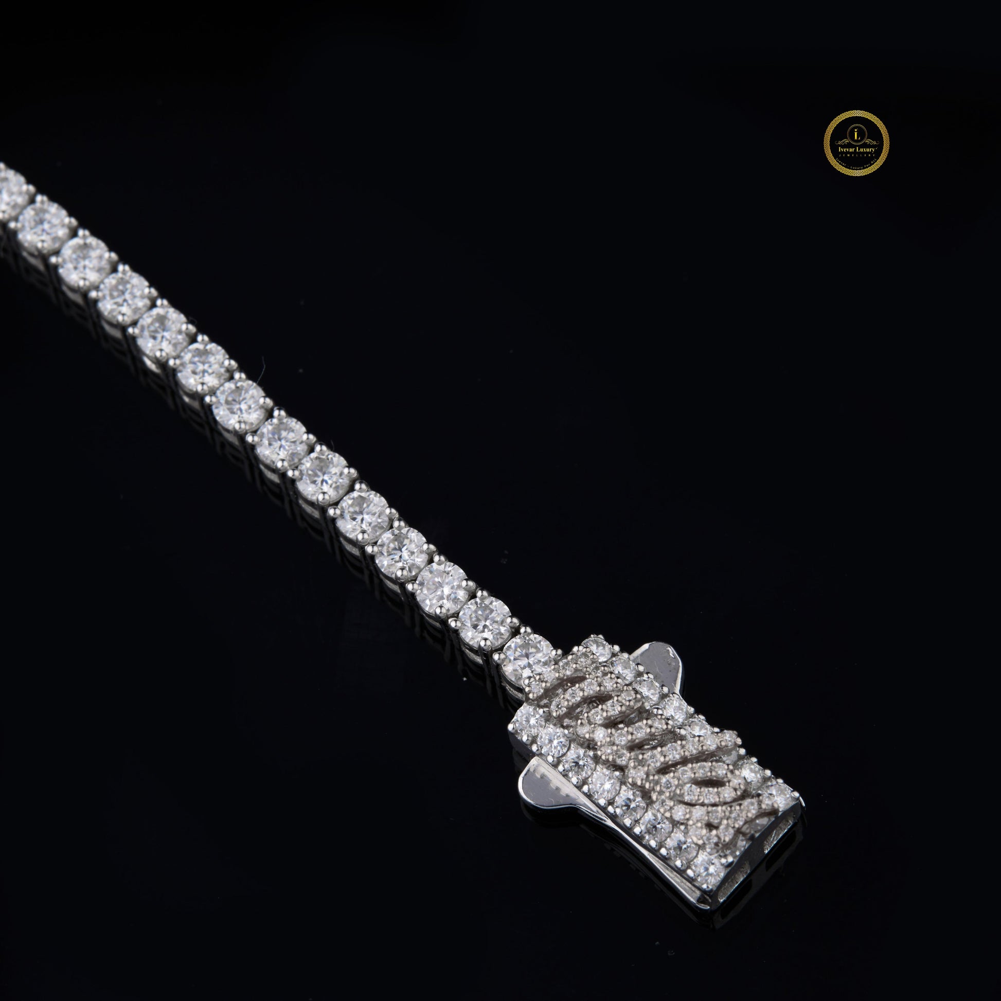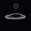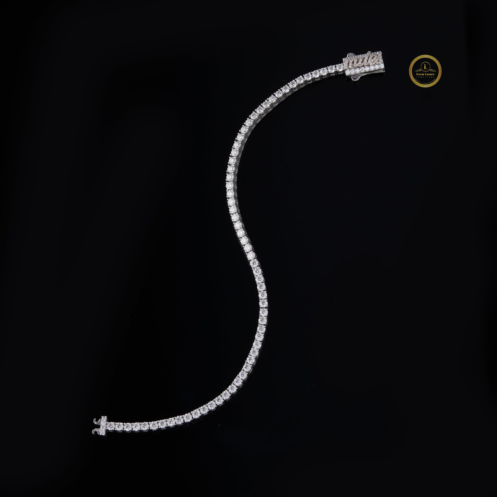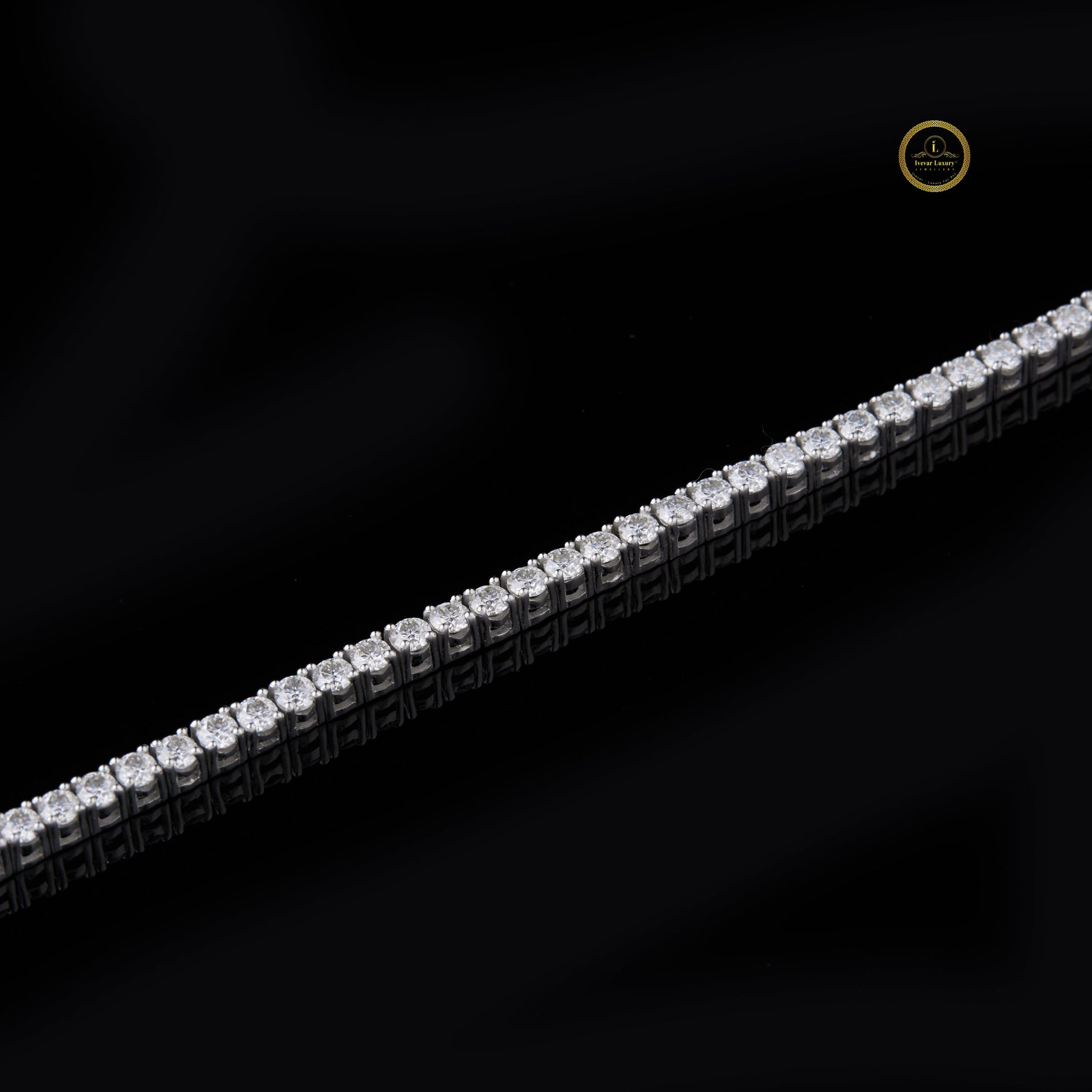 This is a classic, elegant lab-grown diamond tennis bracelet. It features a continuous, flexible line of uniformly sized, brilliant-cut lab-grown diamonds. The setting appears to be a traditional four-prong or basket style, which is characteristic of the tennis bracelet, allowing maximum light exposure for exceptional sparkle. Crucially, this particular bracelet is a double-row design, doubling the diamond coverage and overall carat weight for a bolder, more luxurious look than a standard single-row. Crafted in a white metal, it is a timeless piece that symbolizes sophistication and high luxury, while the use of lab-grown diamonds ensures an ethical and sustainable choice.