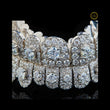 The grillz appear to cover multiple upper teeth in a full-set style, utilizing a dazzling, dense setting—likely pave or cluster—to maximize shine. They are custom-made, ensuring a perfect fit, and typically crafted in precious metals like sterling silver, or white gold (the color suggests a white-metal finish). Lab Grown offers durability and an intense visual presence, making this a bold, fashionable, and eye-catching statement piece.