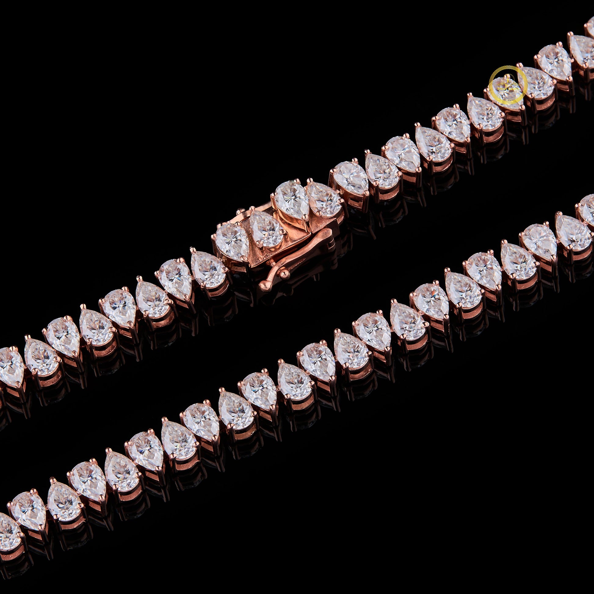 It is "fully iced-out," meaning the entire surface of the links is encrusted with meticulously pavé-set lab-grown diamonds for maximum sparkle. These diamonds are typically Pear Cut and boast VVS clarity and D-F color, ensuring exceptional brilliance identical to mined stones.