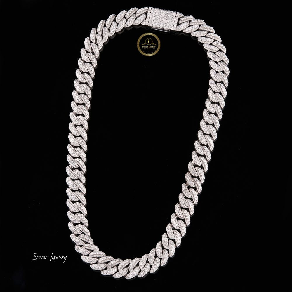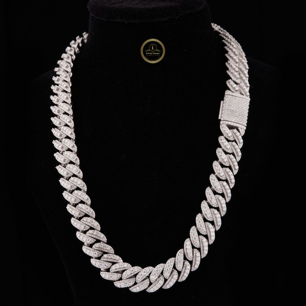 This is a luxurious and bold Iced-Out Cuban Link chain, a design iconic in hip-hop and streetwear jewelry. The chain is characterized by its wide, thick, interlocking oval links.