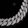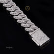 It is fully iced-out, meaning the surface of every link is meticulously covered in pavé-set lab-grown diamonds, maximizing the piece's total brilliance and light reflection. The diamonds are typically round brilliant cut. The metal appears to be white gold (or white gold-plated), giving it a cool, clean, and highly sophisticated aesthetic.
