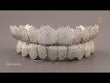The image displays a pair of dazzling custom teeth grillz, designed for both the upper and lower teeth. These pieces are lavishly covered with lab-grown diamonds, offering the brilliance and luxury of natural diamonds but at a more accessible price point and with an ethical sourcing benefit.