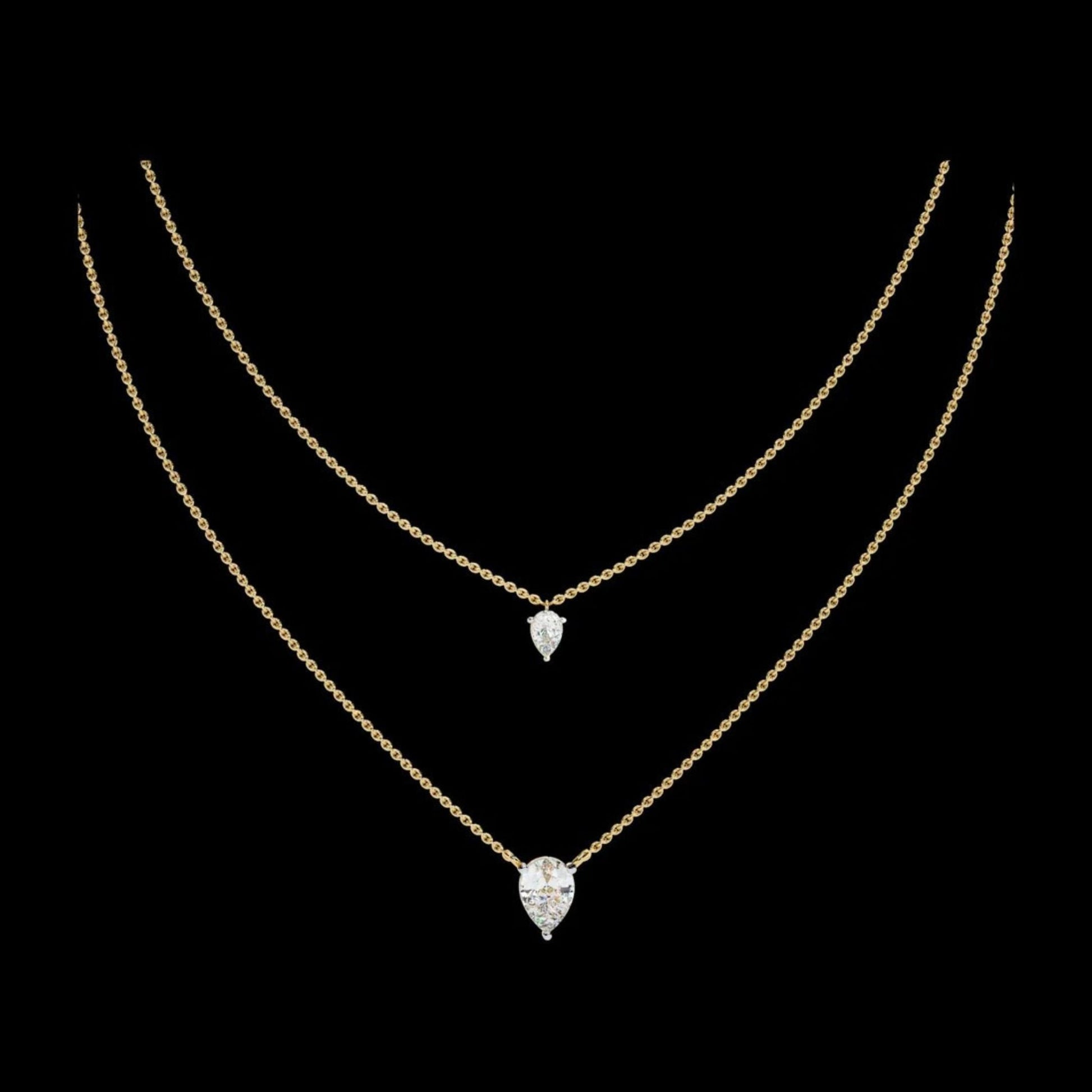 This elegant pendant necklace features a Stunning Double Layer Design crafted in radiant gold. Each delicate chain showcases a Pear Shaped Diamond—one smaller and one larger—creating a harmonious balance of sophistication and sparkle. The teardrop-shaped stones catch the light beautifully, making this piece perfect for both everyday elegance and special occasions by Ivevar. The design embodies timeless luxury and refined minimalism, ideal for those who appreciate understated glamour.
