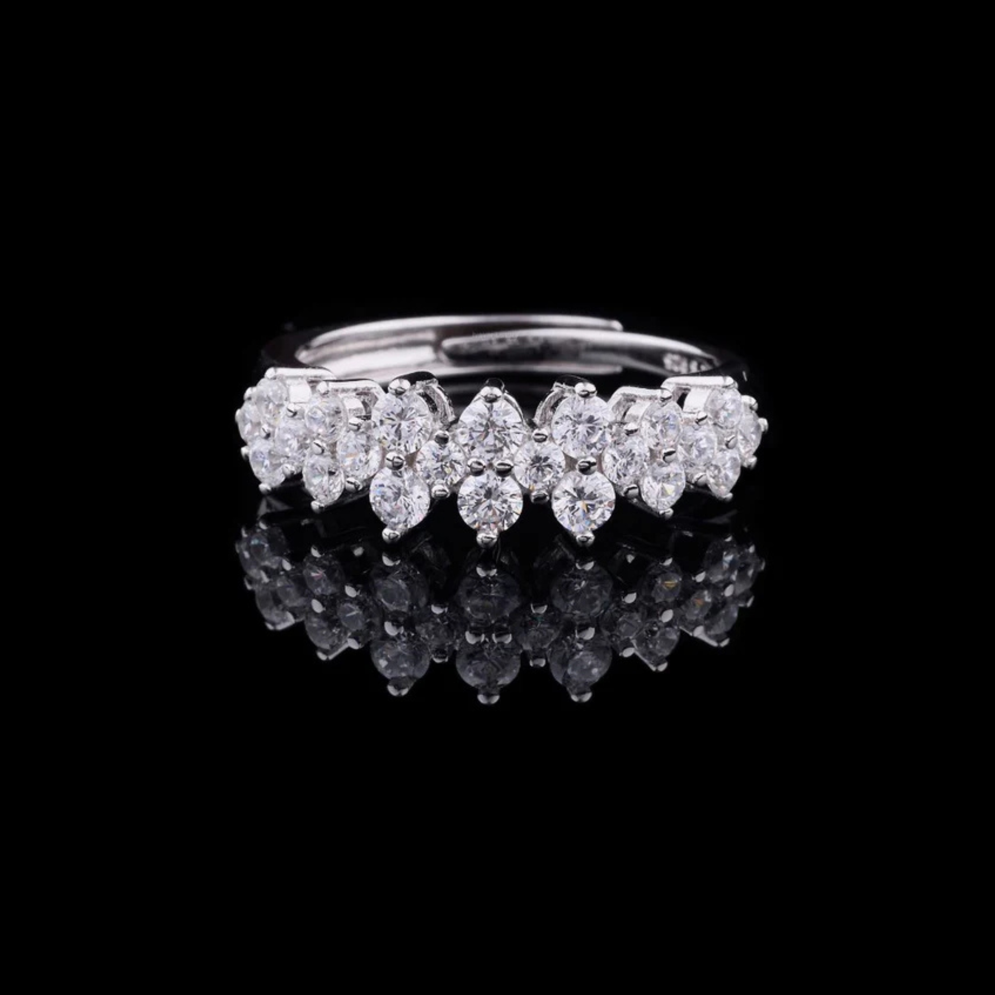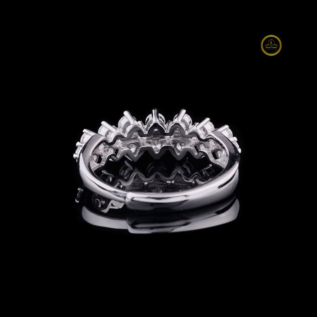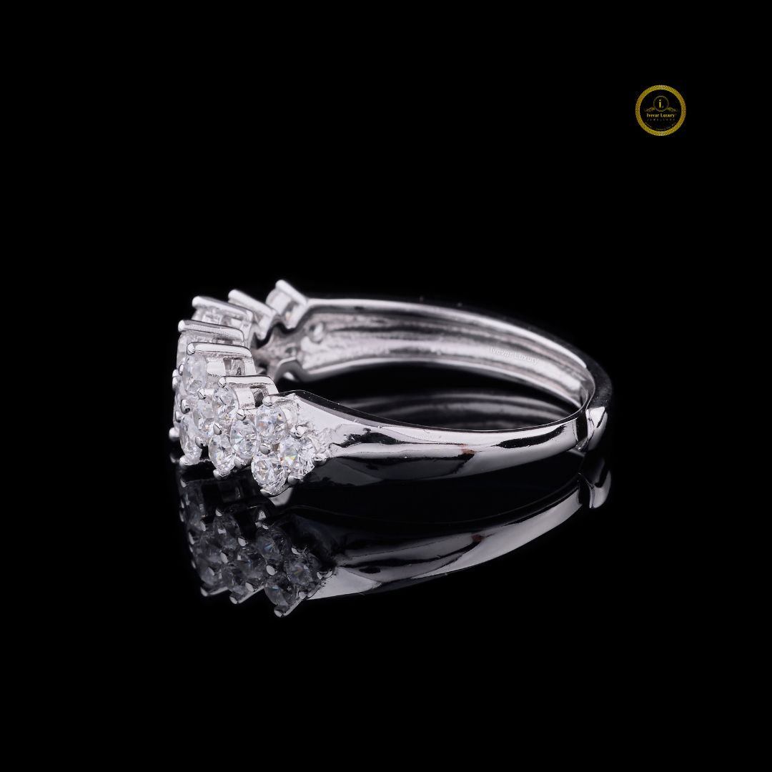 This stunning ring features a brilliant cluster of round-cut diamonds arranged in a graceful, crown-like design. Set in polished white gold, the diamonds create a radiant sparkle that catches light from every angle. Perfect for special occasions or everyday elegance, this piece embodies luxury, sophistication, and timeless beauty.