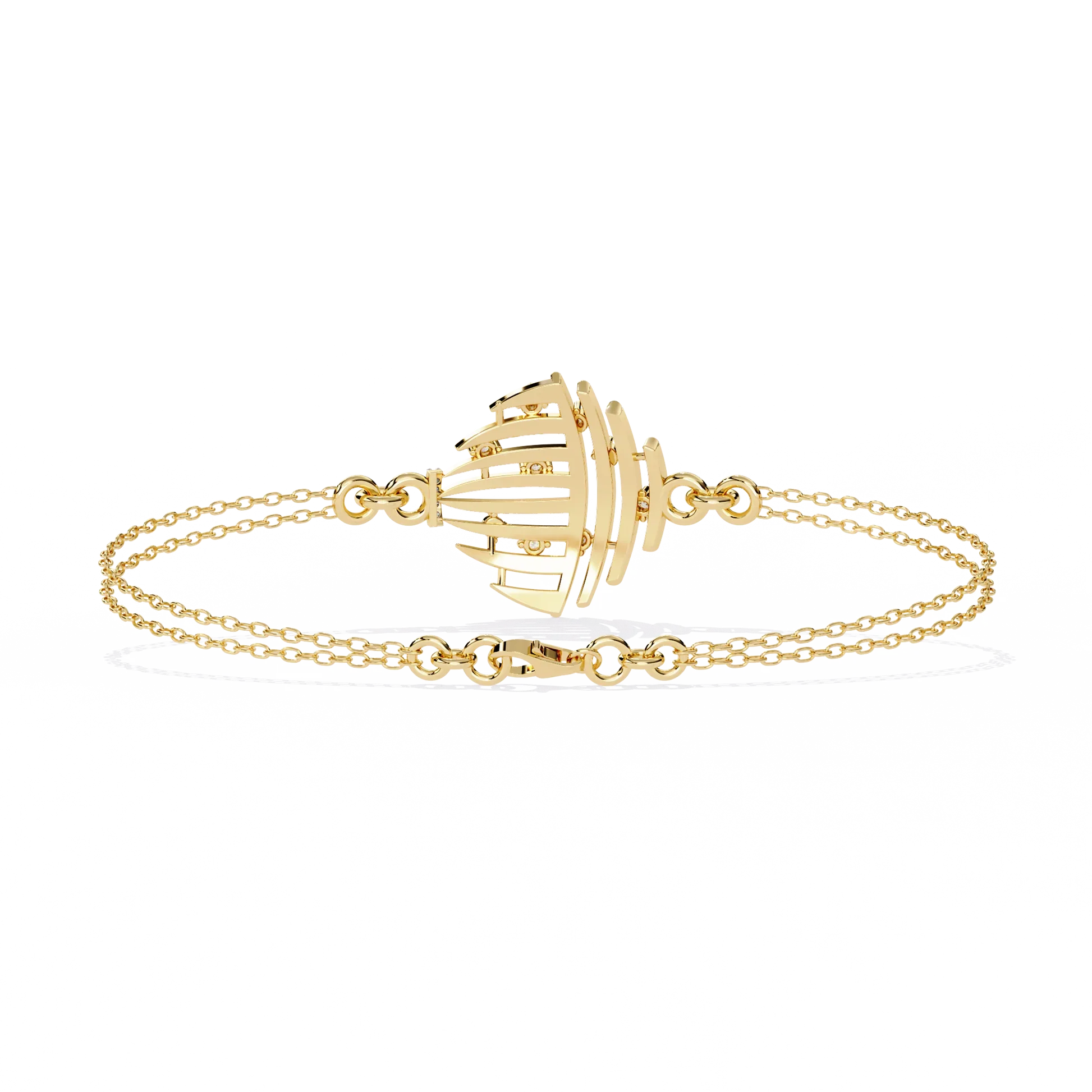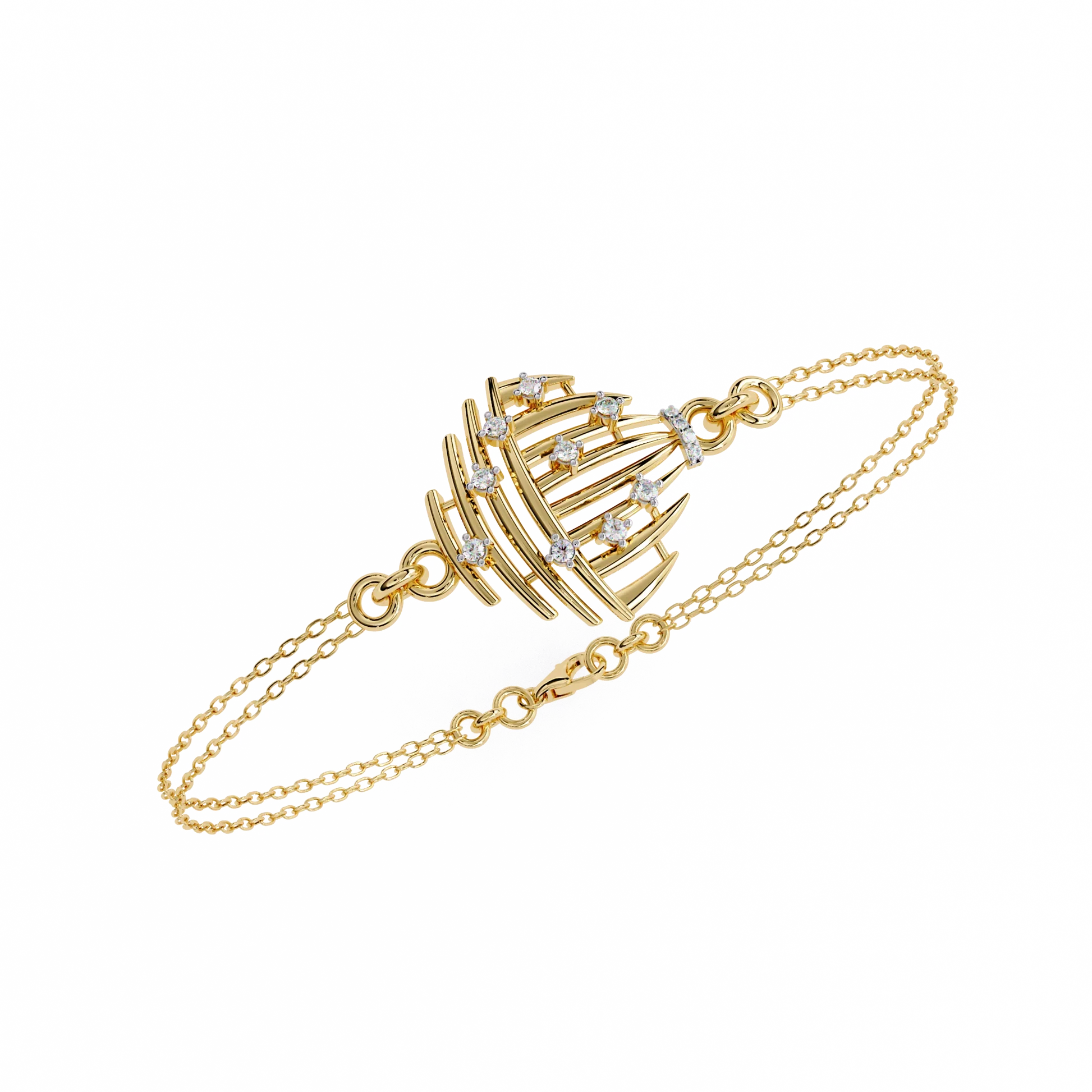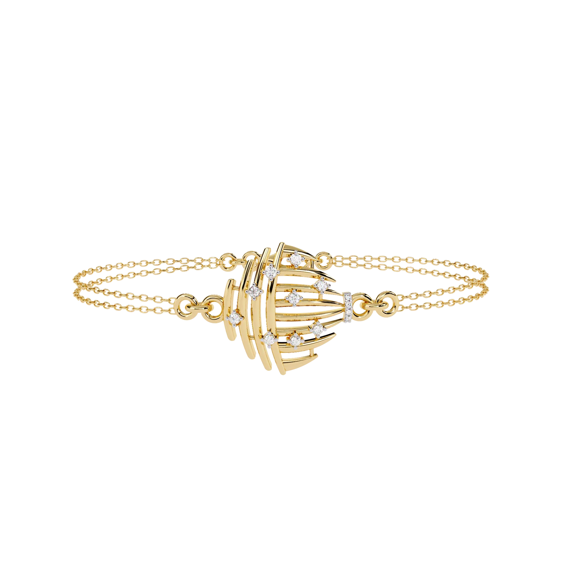 This stunning bracelet features a dual gold chain design paired with a captivating spiral dome centerpiece, beautifully accented with sparkling diamonds. Its artistic craftsmanship and contemporary elegance make it a standout accessory for those who appreciate refined luxury. Perfect for special occasions or elevating everyday style, this bracelet radiates sophistication and timeless beauty.