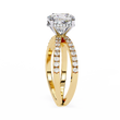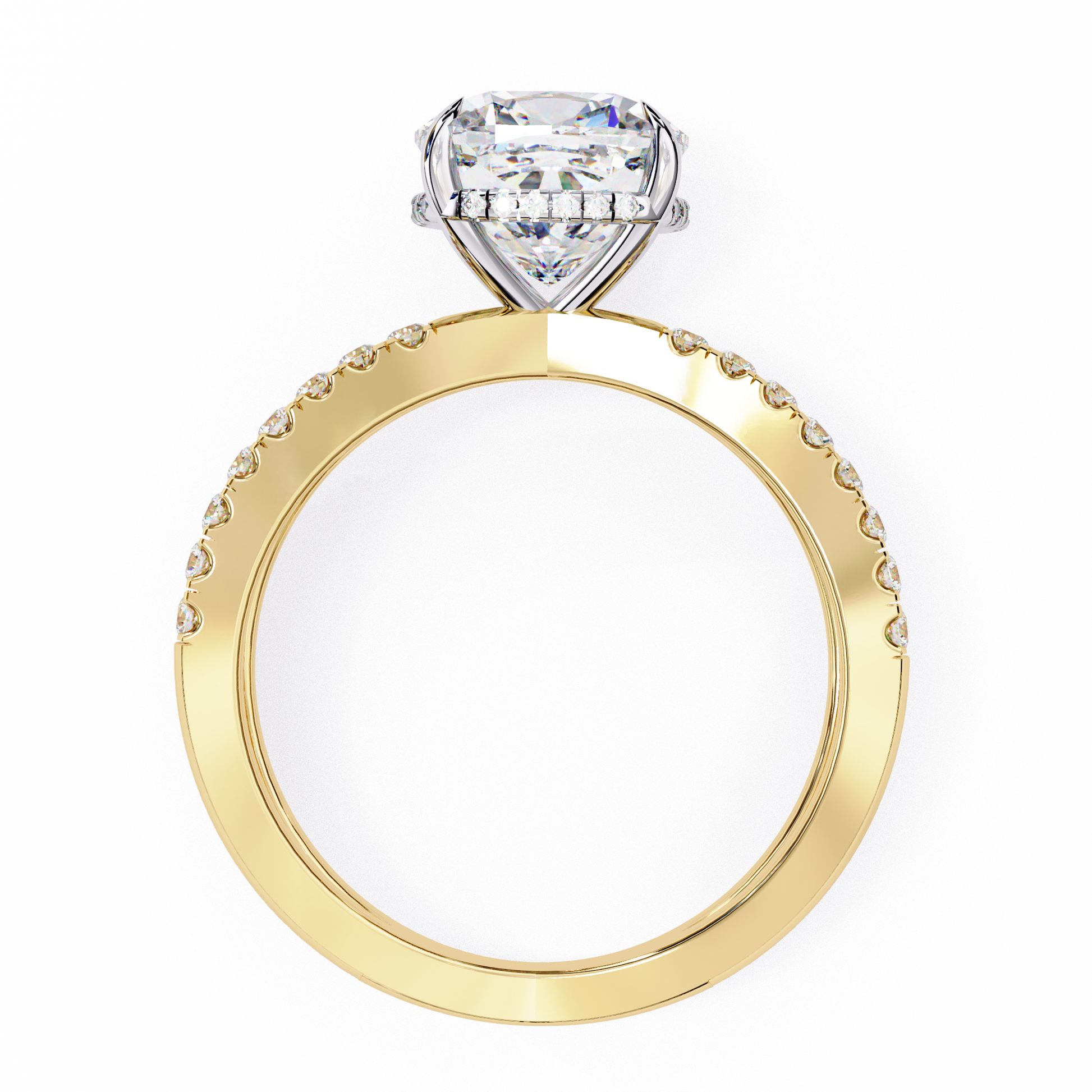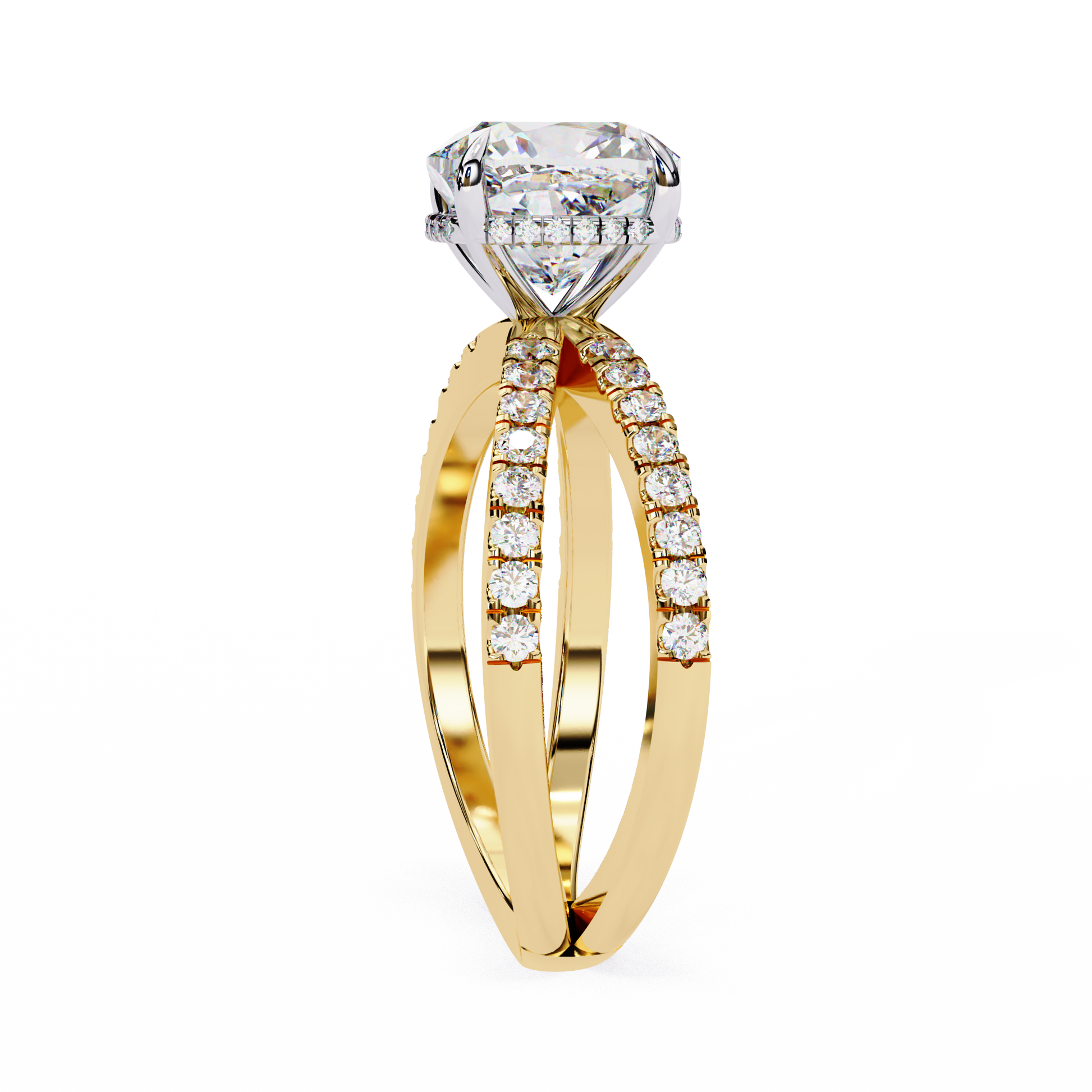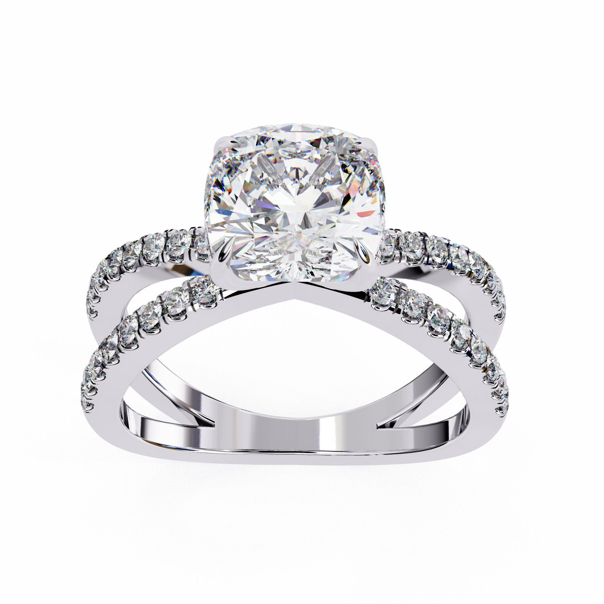 This exquisite ring showcases a brilliant cushion-cut diamond at its center, set in a secure prong setting that highlights its depth, sparkle, and fire. The band features a luxurious split-shank design crafted in radiant gold, each arm adorned with a row of meticulously set round diamonds that enhance the ring’s overall brilliance. The combination of the soft, elegant cushion silhouette with the modern diamond-studded split band creates a perfect balance of timeless sophistication and contemporary glamour, making this piece an unforgettable symbol of refined luxury by Ivevar.
