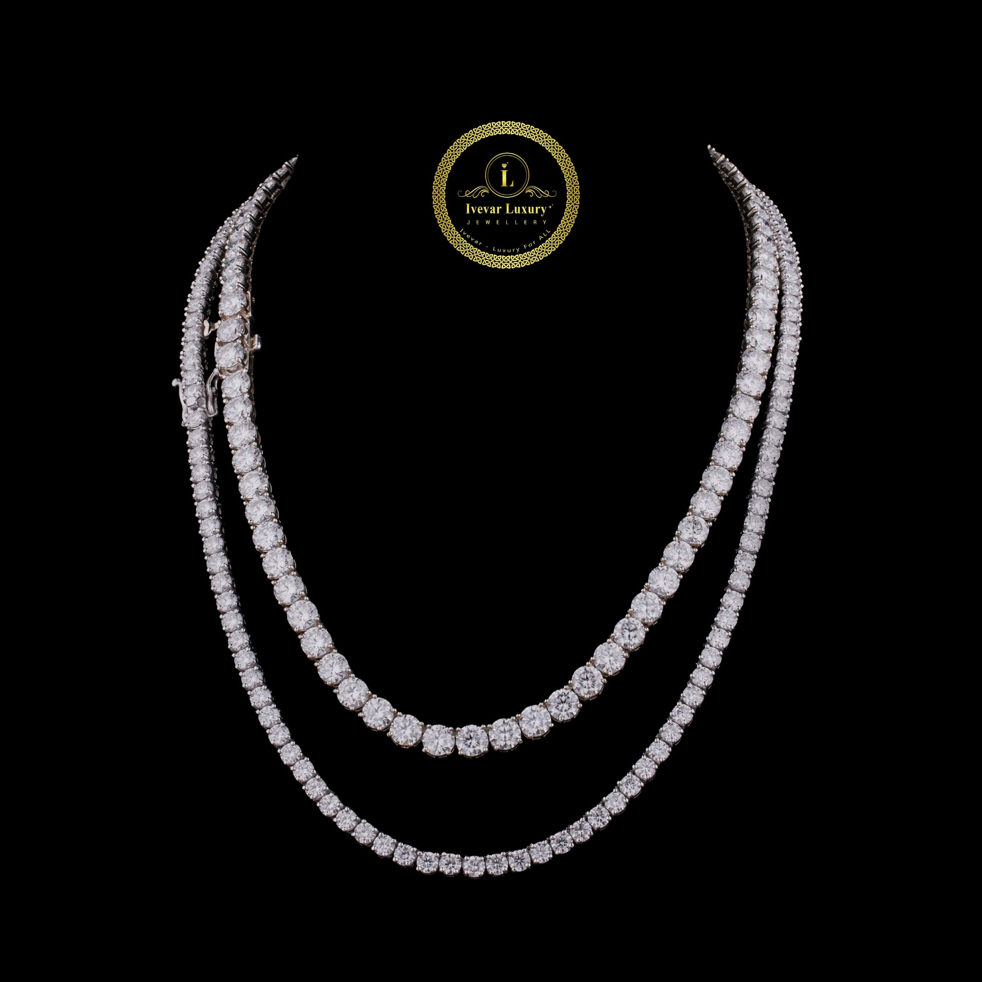 The two chains appear to be of slightly different lengths and stone sizes, which creates a staggered, layered effect for enhanced visual depth and dramatic sparkle. The stones are set close together, likely in a prong or basket setting, maximizing light return. This piece embodies timeless elegance and a luxurious, red-carpet look. The Ivevar Luxury logo suggests this is a high-quality custom piece.